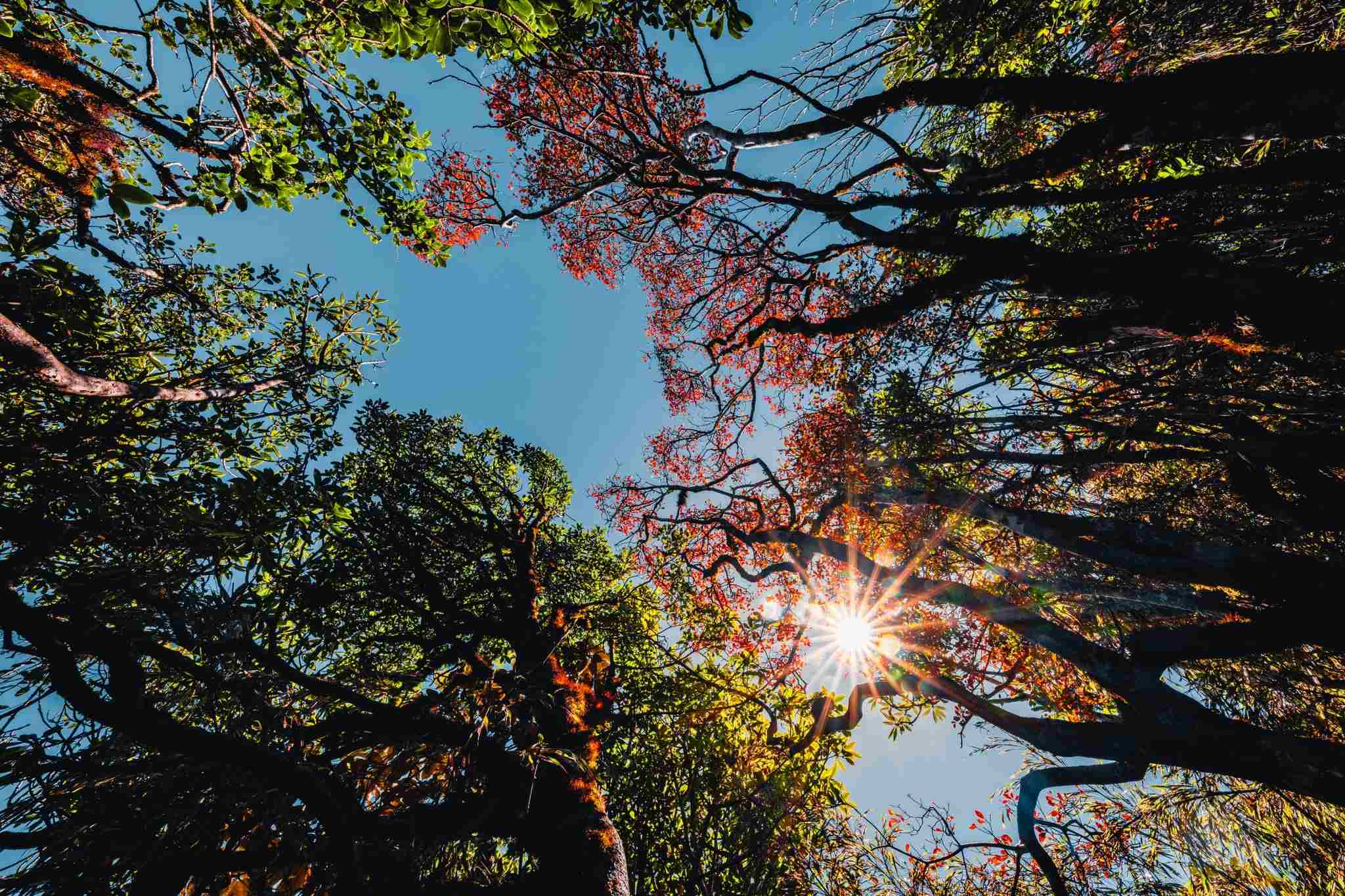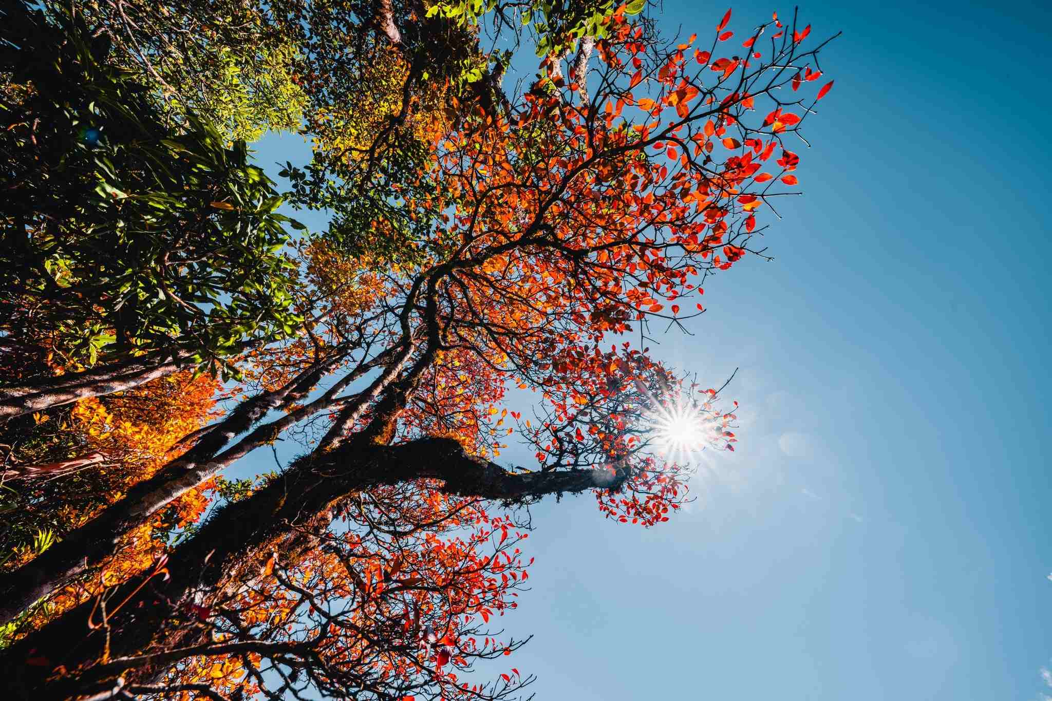 To również pora roku, kiedy liście klonu czerwienieją, tworząc efektowną plamę barw między zielonym lasem a białymi chmurami. Zdjęcie: NAG Van Ngo