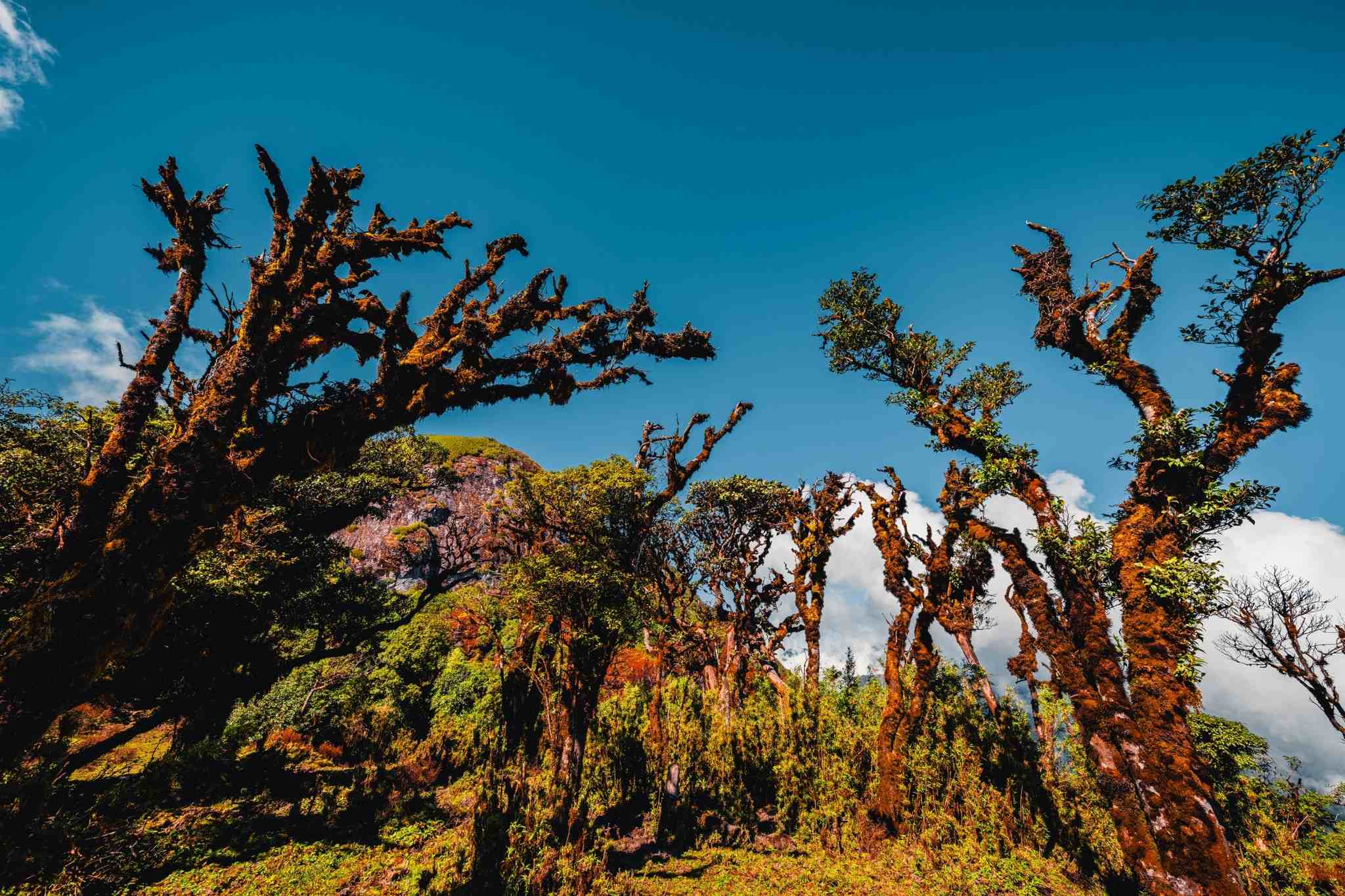 Trasa trekkingowa Bach Moc Luong Tu ma wiele stromych i trudnych odcinków, wymagających wytrzymałości. Oprócz zdobywania górskich szczytów i stromych skalistych grzbietów, turyści muszą również przemierzać stare lasy i porośnięte mchem pasma górskie. Zdjęcie: NAG Van Ngo