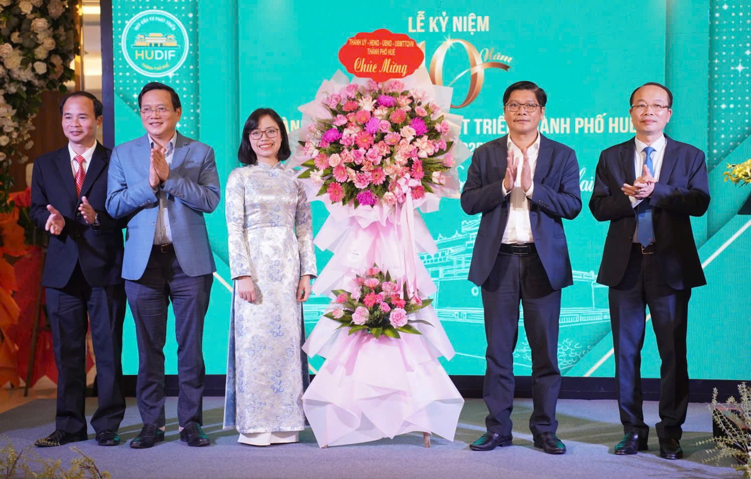 Przy tej okazji wiceprzewodniczący Miejskiego Komitetu Ludowego Phan Quy Phuong wręczył certyfikat zasług od przewodniczącego Miejskiego Komitetu Ludowego Hue Funduszowi Inwestycyjnemu Rozwoju Miasta Hue.