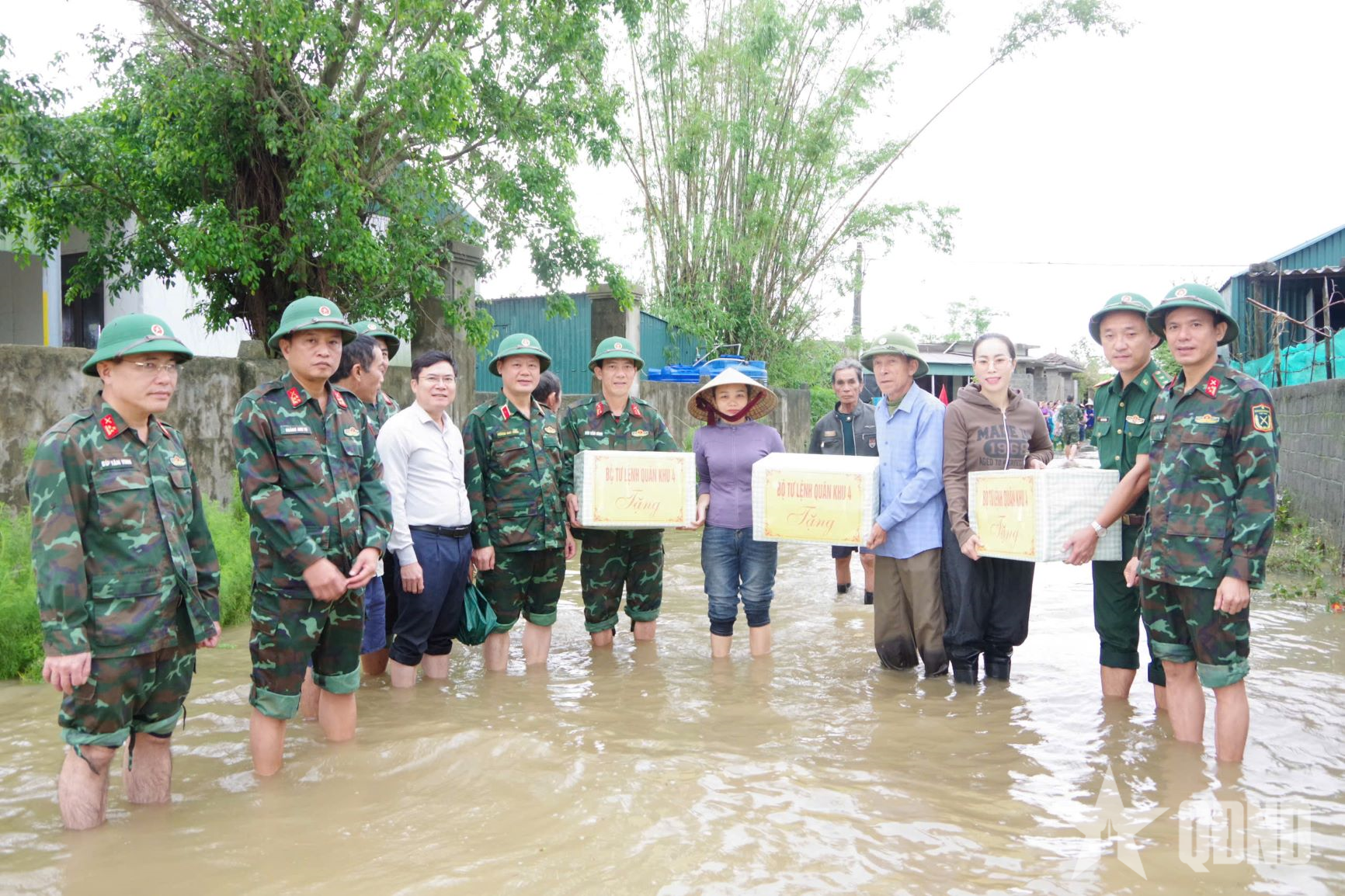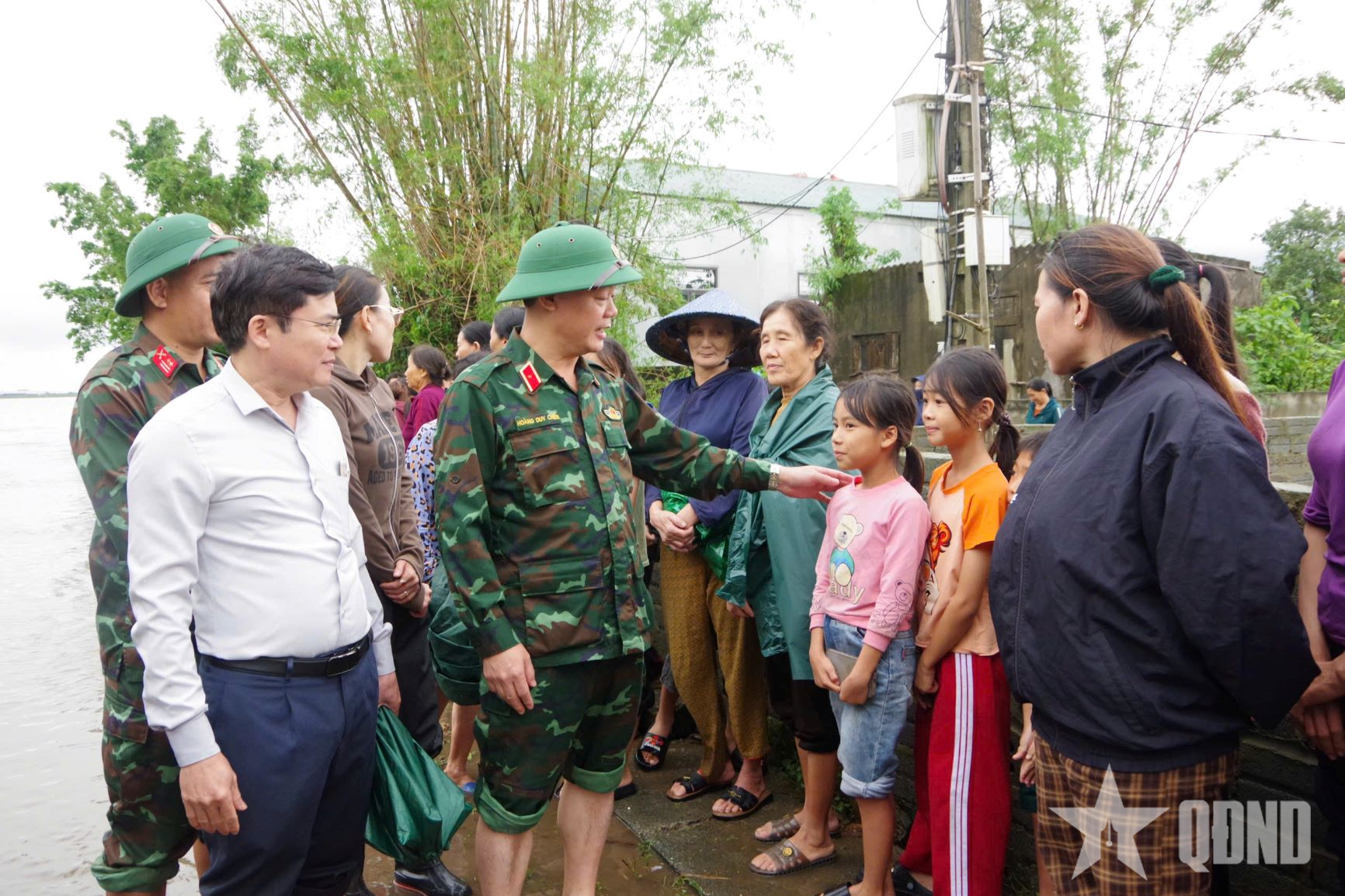 Dokonując bezpośredniej inspekcji miejscowości nadmorskich w okręgu Vung Ang w prowincji Ha Tinh , generał dywizji Hoang Duy Chien wysoko ocenił proaktywne działania prewencyjne i reagowanie lokalnych komitetów partyjnych, władz i sił zbrojnych. W szczególności docenił wdrożenie „4 działań na miejscu”, gotowych do mobilizacji sił i środków do radzenia sobie z sytuacjami powodziowymi.