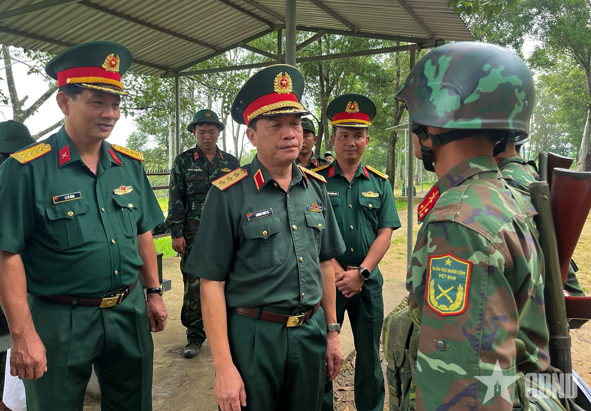 | Starszy generał broni Truong Thien To dokonał inspekcji i dodał otuchy żołnierzom 2. Dywizji. |