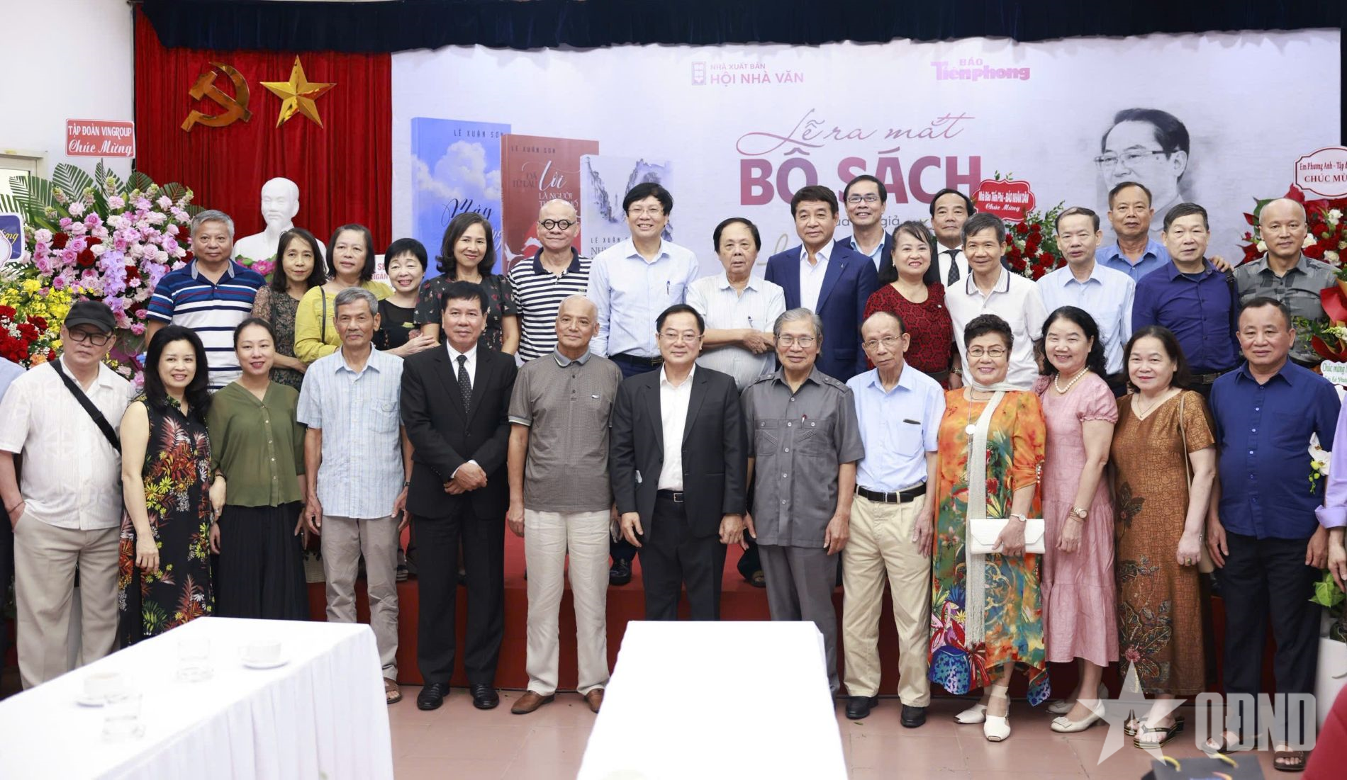 Koledzy, przyjaciele ze świata literatury i rodzina przybyli, aby pogratulować dziennikarzowi Le Xuan Sonowi premiery jego trylogii książkowej. |