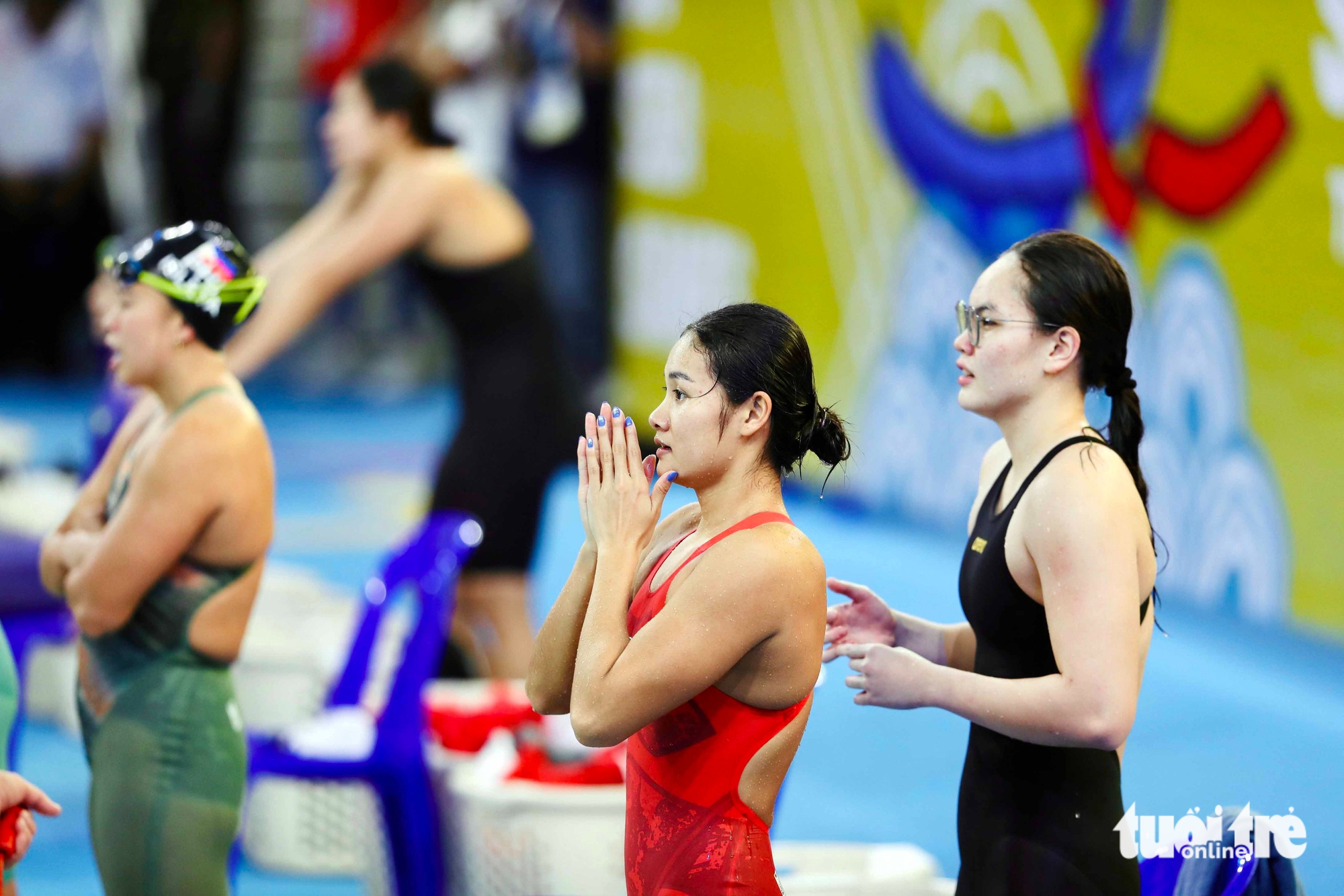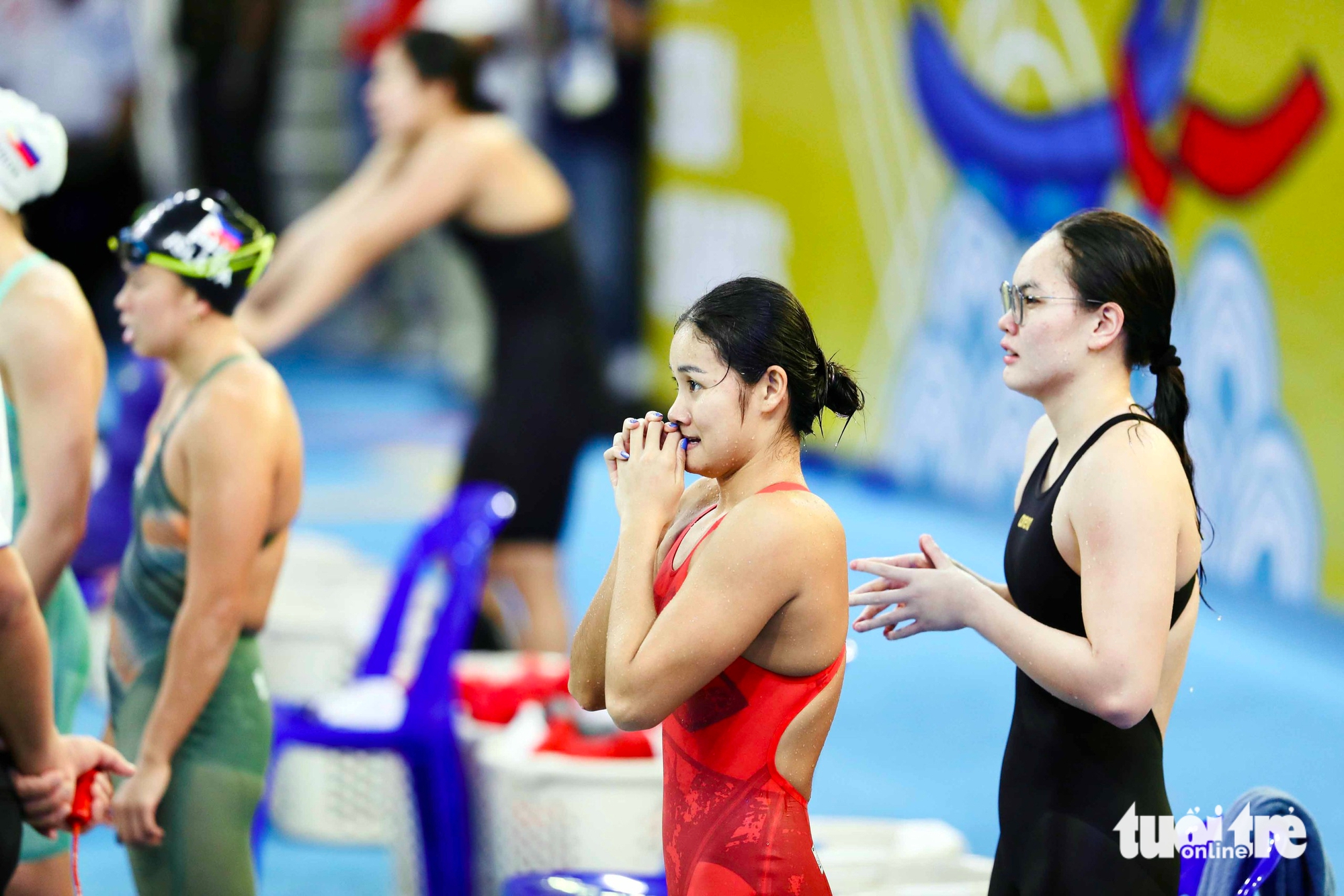 Após terminar sua natação, My Tien assistiu ansiosamente à competição de suas colegas de equipe - Foto: NK