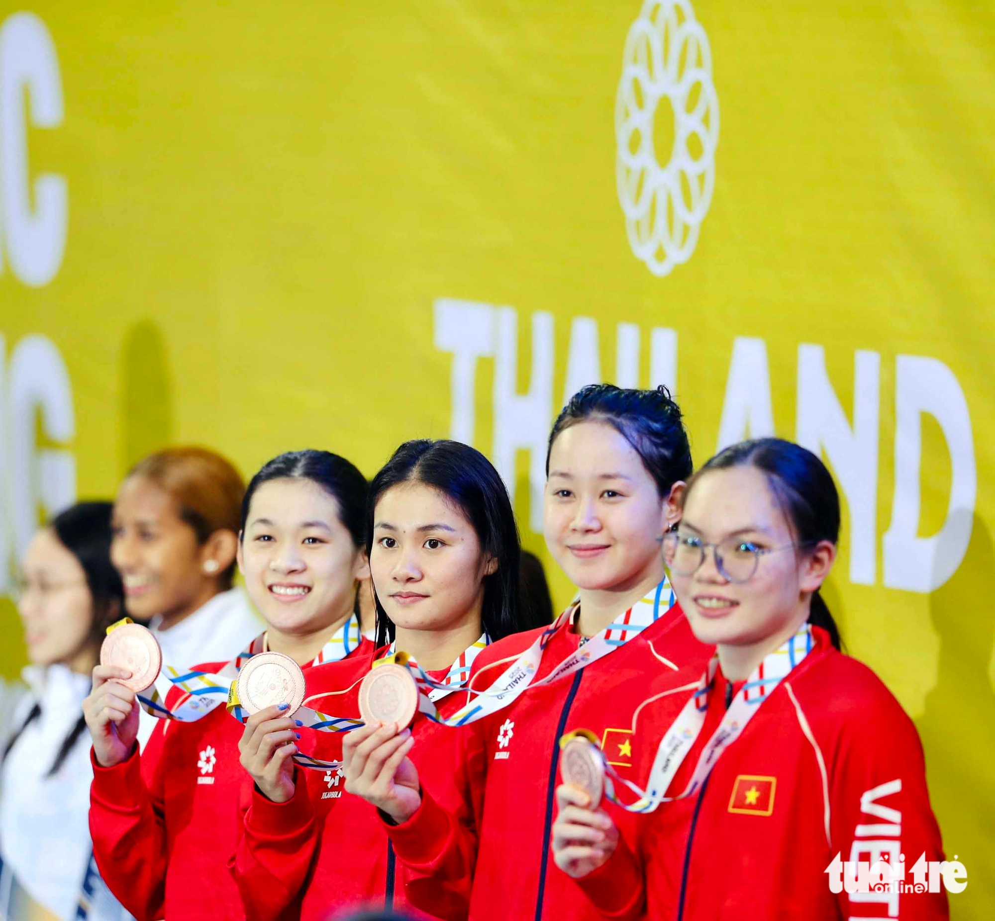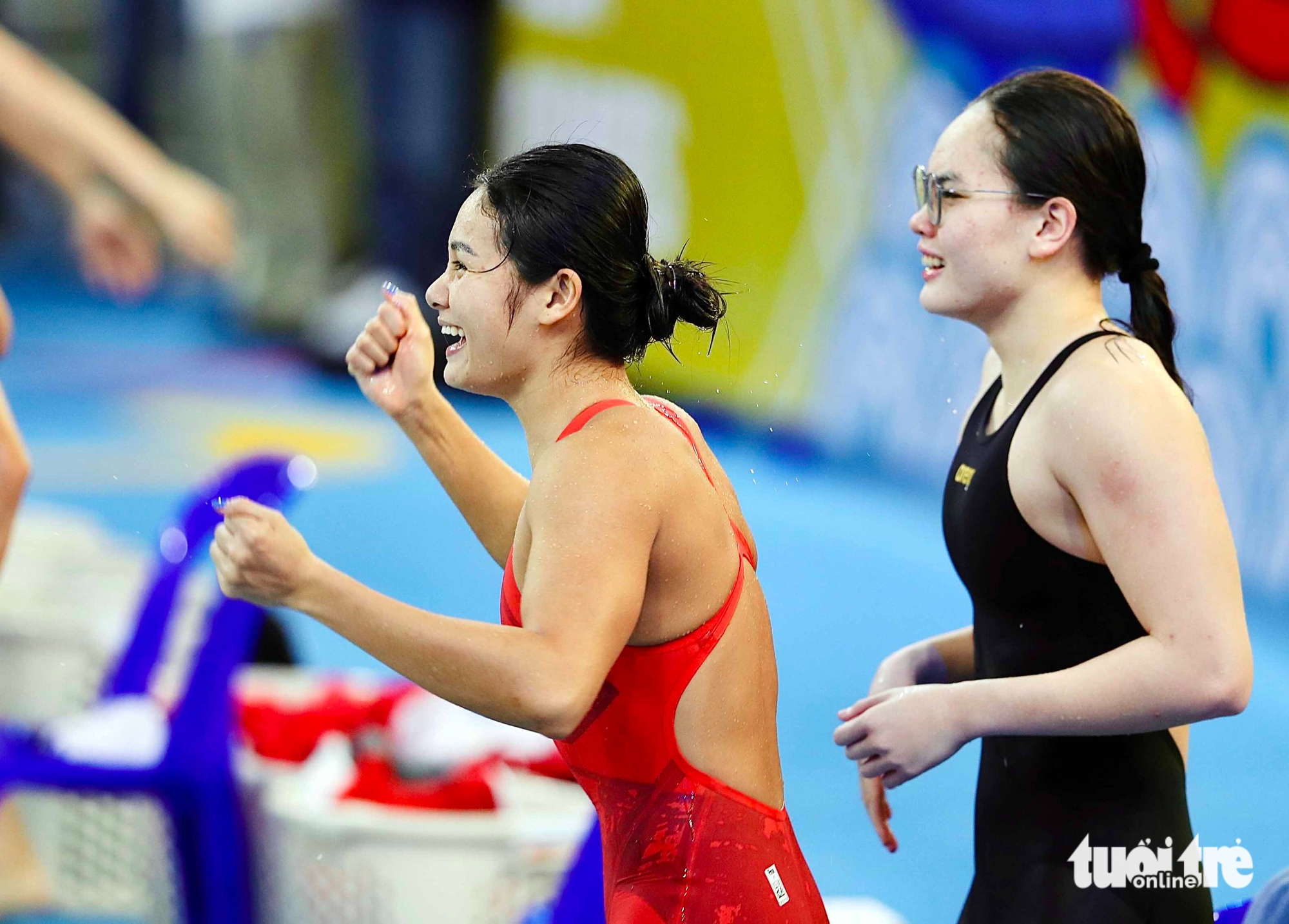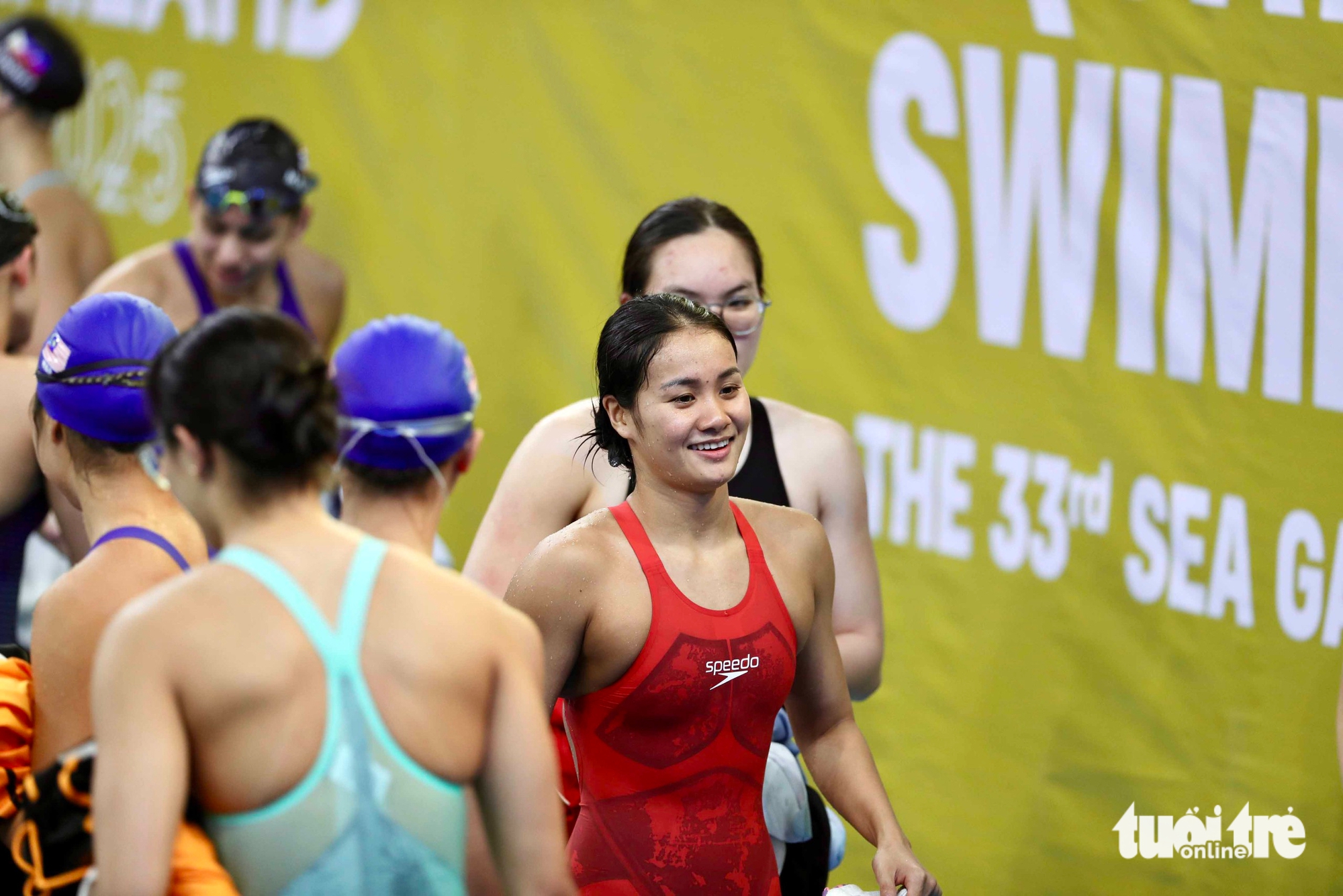 Mas My Tien não ficou triste por muito tempo. Ela competiu com toda a garra, conquistando uma medalha de bronze histórica nos Jogos do Sudeste Asiático com suas companheiras de equipe no revezamento 4x200m livre feminino. As expressões de My Tien na piscina enquanto torcia por suas companheiras também eram lindas.
