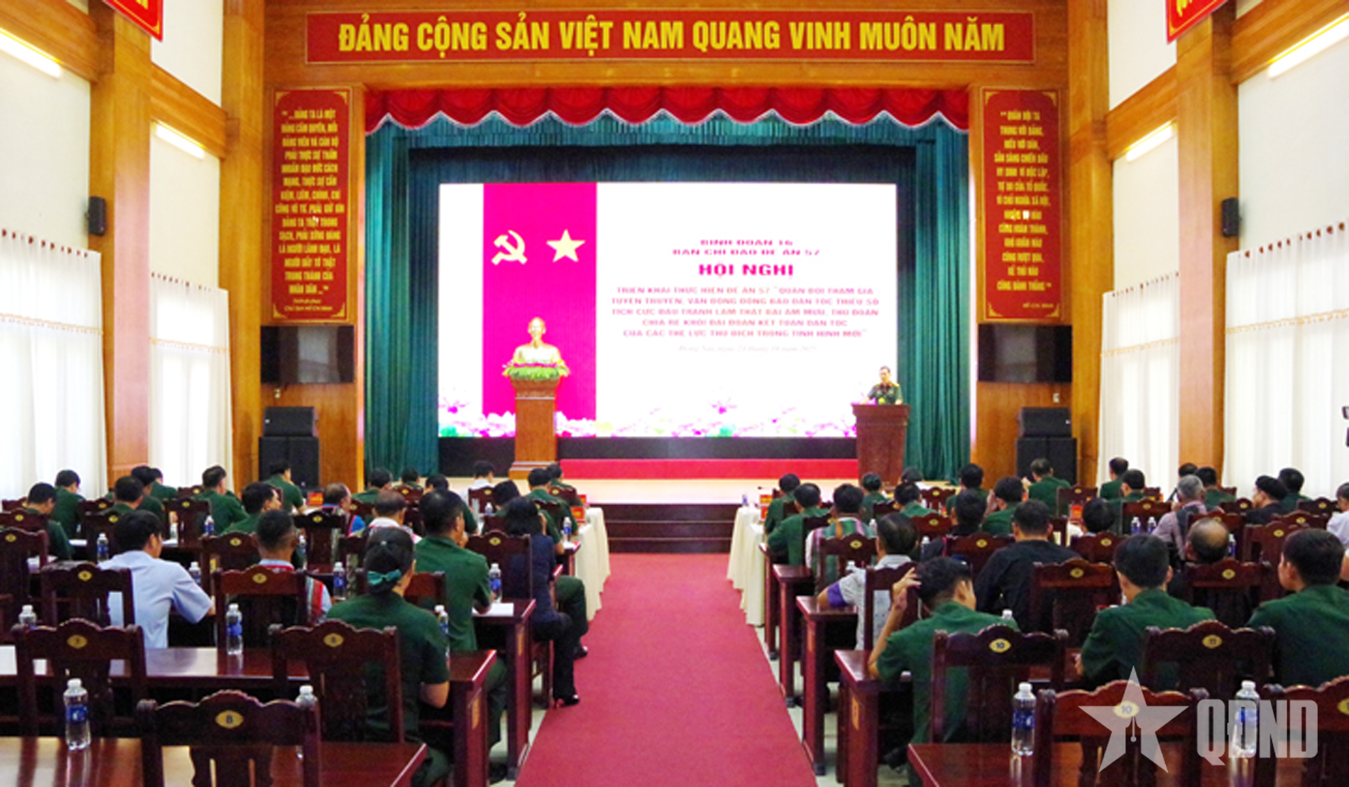 Ao implementar o Projeto 57, o Corpo 16 estabelece uma meta de que, até 2030, 100% dos quadros e soldados participarão da mobilização e propagação de minorias étnicas para lutar ativamente para derrotar as conspirações e truques de forças hostis para dividir o grande bloco de unidade nacional; 100% das forças locais se coordenarão com unidades para participar da propagação e mobilização de minorias étnicas, especialmente em áreas-chave; organizarão bem o treinamento em conteúdo, métodos e habilidades em propaganda e mobilização...