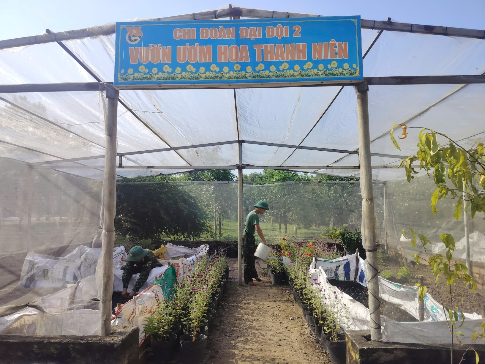 Ao ser questionado sobre as funções de cada membro do "Grupo de Soldados Jardineiros", o Sargento Le Thanh Tin, Líder de Esquadrão da Metralhadora, Companhia 2, Batalhão 7 (Regimento 31), compartilhou: "As flores recém-brotadas são cuidadas com muito zelo e meticulosidade no viveiro, cobertas com redes. Ali, a companhia designou dois camaradas 'especiais' - que já eram habilidosos no cultivo de flores antes de ingressarem no exército. Quanto às plantas que cresceram bastante, atingindo a altura de uma mão, um grupo de soldados fica encarregado de transferi-las para vasos, colocados sob a copa de árvores antigas ou cobertos diariamente para evitar a luz solar intensa. À noite, os membros se revezam na captura de caracóis, minhocas e outros insetos prejudiciais às plantas."