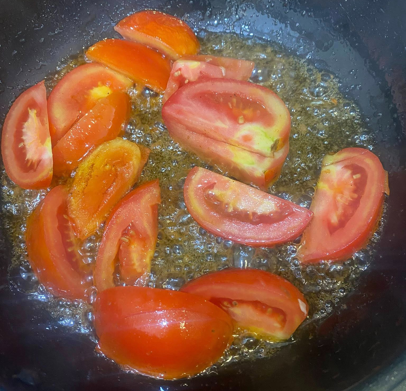 Tomates fatiados salteados rapidamente com banha - Foto: Facebook Vinh Quyen