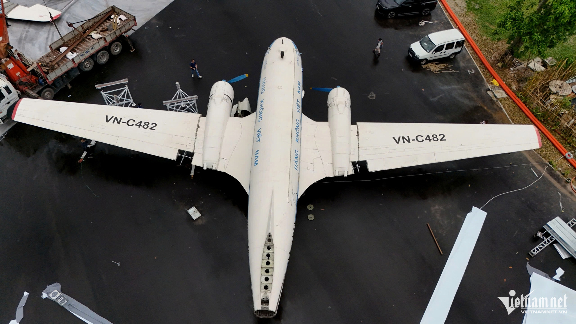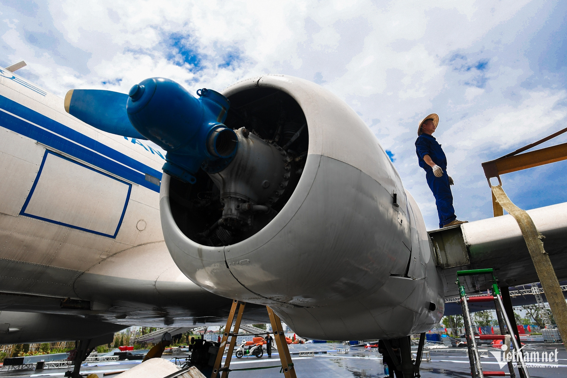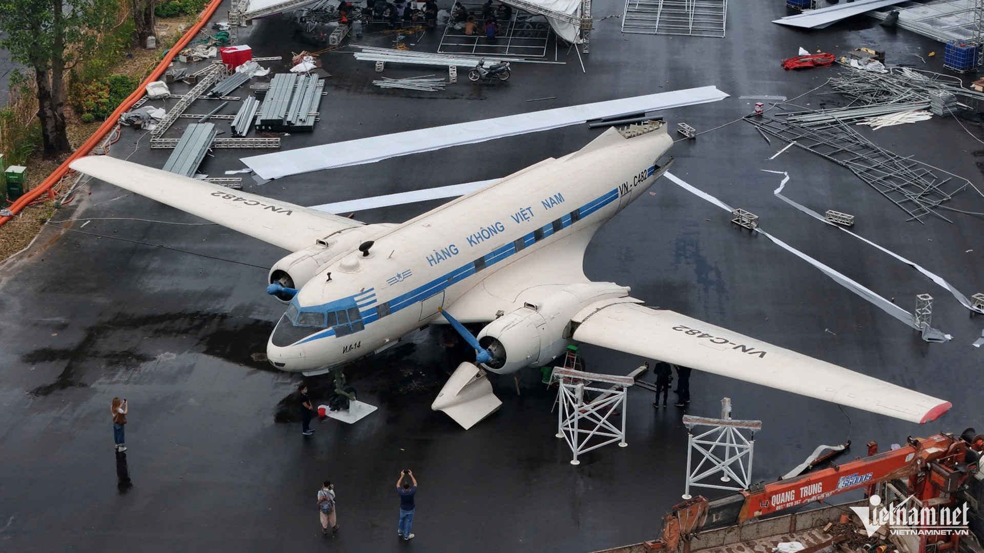 Em 16 de agosto, trabalhadores da Aviation Technical Services Joint Stock Company correram para concluir a instalação da aeronave IL-14 com número de registro VN-C482 no Centro Nacional de Exposições ( Hanói ).