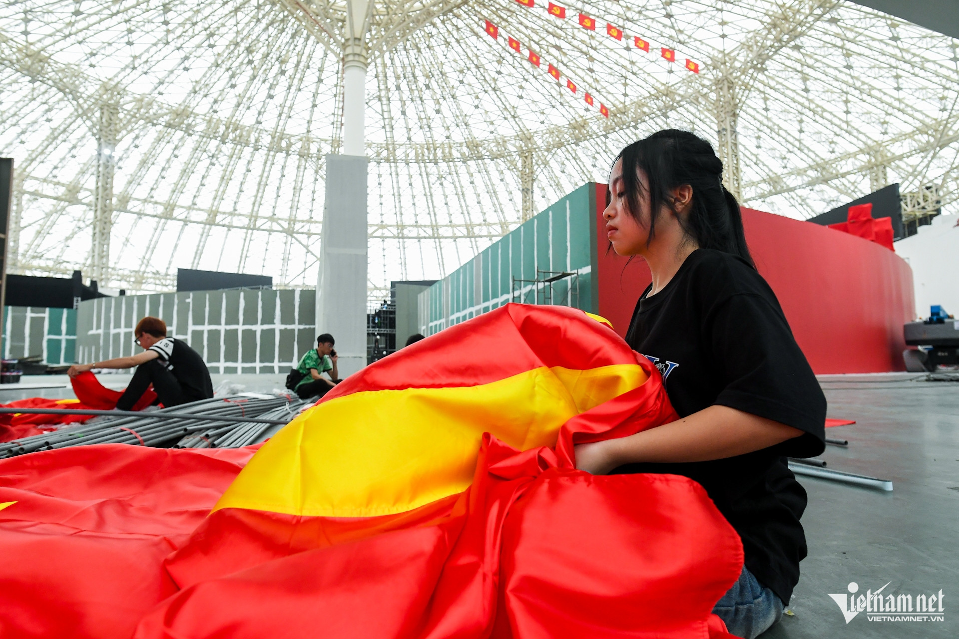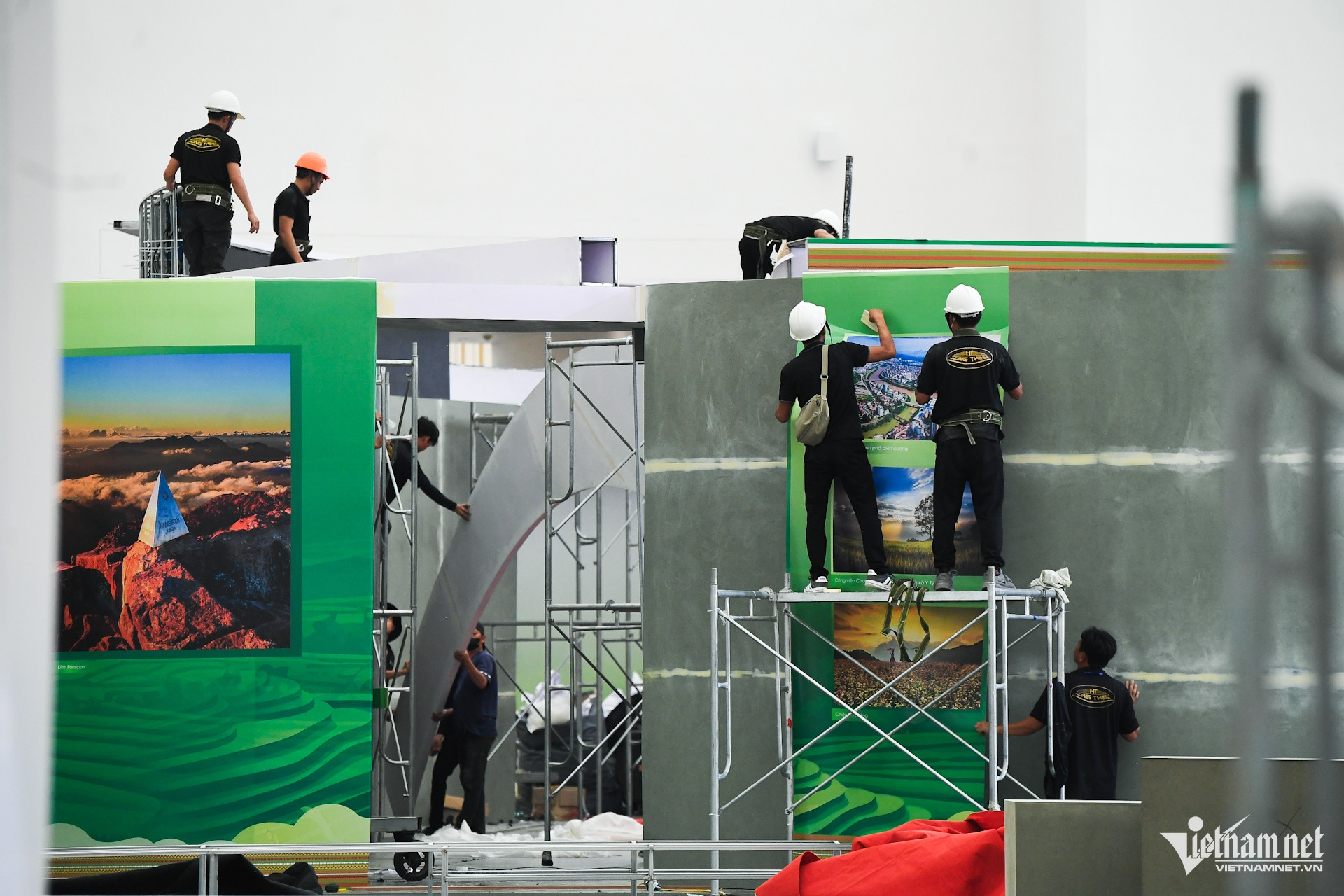 No salão do Centro Nacional de Exposições, os trabalhadores estão acelerando a conclusão dos estandes da exposição "Jornada de 80 anos de Independência - Liberdade - Felicidade". Os espaços expositivos internos e externos estão dispostos em uma área de quase 260.000 metros quadrados, divididos em grandes áreas de conteúdo, como: Área de Exposição Geral; Zona Econômica Verde; Energia Limpa...
