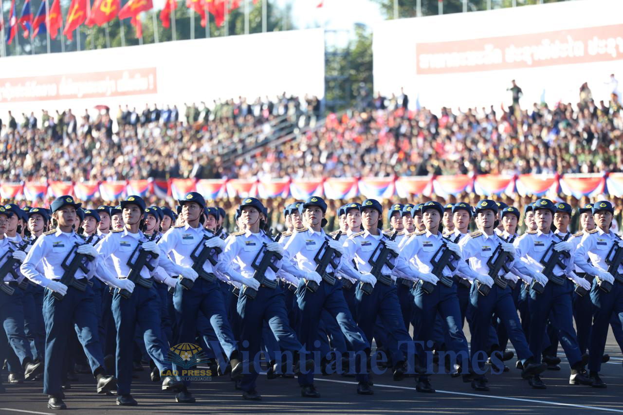 Imediatamente após o discurso do Secretário-Geral e Presidente Thongloun Sisoulith, ocorreu um grande desfile, com a coordenação harmoniosa e solene das forças armadas, ministérios, departamentos, ramos, organizações sociopolíticas e sindicatos.
