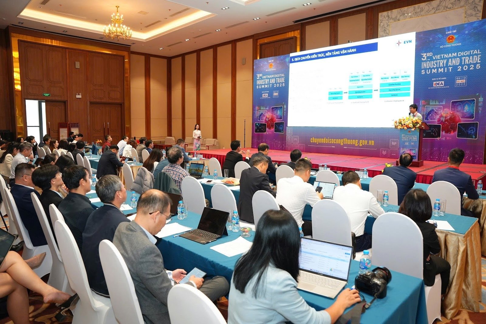 Em termos de infraestrutura energética, o Sr. Nguyen Xuan Khai, Vice-Diretor do Centro de TIC da EVN, compartilhou informações sobre o processo de modernização do Grupo de Eletricidade do Vietnã. O Sr. Khai afirmou que a EVN tem se transformado fortemente, passando de um modelo operacional tradicional para um ecossistema digital, desde escritórios digitais e ERP até sistemas SCADA/DCS que abrangem toda a rede nacional. A taxa de subestações não tripuladas atingiu 92,68% no nível de 500 kV e 100% no nível de 110 kV. A aplicação de drones e inteligência artificial auxilia a EVN a automatizar a inspeção de linhas, reduzir o tempo de resposta a incidentes e melhorar a segurança. No período de 2025 a 2030, a EVN pretende concluir um banco de dados compartilhado, padronizar a semântica e implantar infraestrutura de IA de alto desempenho para avançar rumo ao modelo "EVN Inteligente".