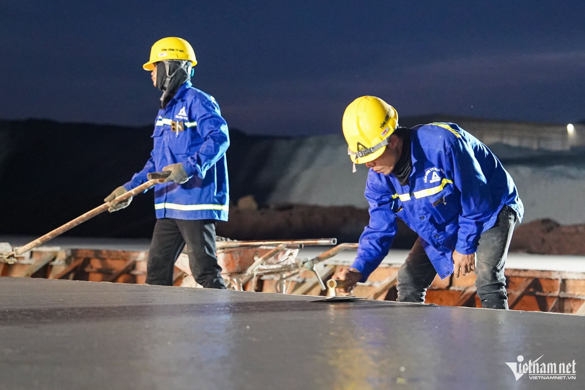 Os turnos noturnos no canteiro de obras são difíceis, mas para muitos trabalhadores, o orgulho de contribuir para um projeto nacional faz com que todo o cansaço desapareça. Há muitos meses, Nguyen Van Hue e seus colegas de equipe trabalham incansavelmente no canteiro de obras, considerando os turnos noturnos uma rotina diária.