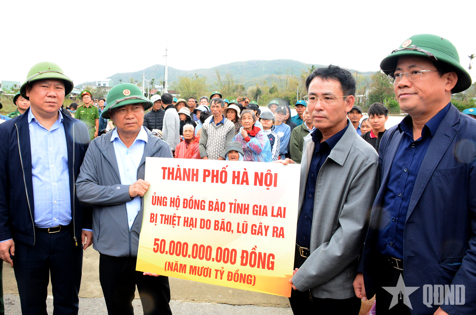 Além disso, os líderes do Partido, do Estado e do Comitê Central da Frente da Pátria do Vietnã apoiaram a província de Gia Lai com 20 bilhões de VND; a cidade de Hanói apoiou a província de Gia Lai com 50 bilhões de VND para superar as consequências das enchentes; o Comando da 5ª Região Militar também presenteou a população com 40 itens.