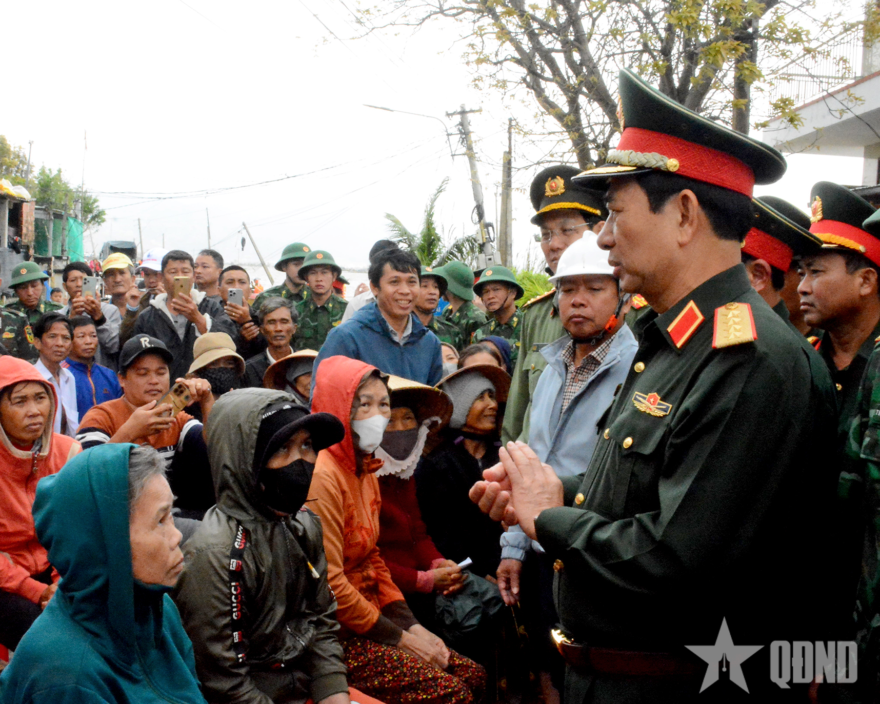 Ao visitar famílias cujas casas foram profundamente inundadas e conversar com moradores das comunas de Tuy Phuoc e Tuy Phuoc Dong (província de Gia Lai), o General Phan Van Giang, em nome dos líderes do Partido, do Estado, da Comissão Militar Central e do Ministério da Defesa Nacional, expressou profunda solidariedade às dificuldades, sofrimentos e perdas que as pessoas nas áreas inundadas em todo o país, em geral, e na província de Gia Lai, em particular, estão enfrentando. Ao mesmo tempo, afirmou que o Partido, o Estado, a Comissão Militar Central e o Ministério da Defesa Nacional avaliaram os danos e orientaram todos os níveis, ramos, a 5ª Região Militar e o 34º Corpo do Exército a apoiar as localidades e a população na superação das consequências dos desastres naturais.