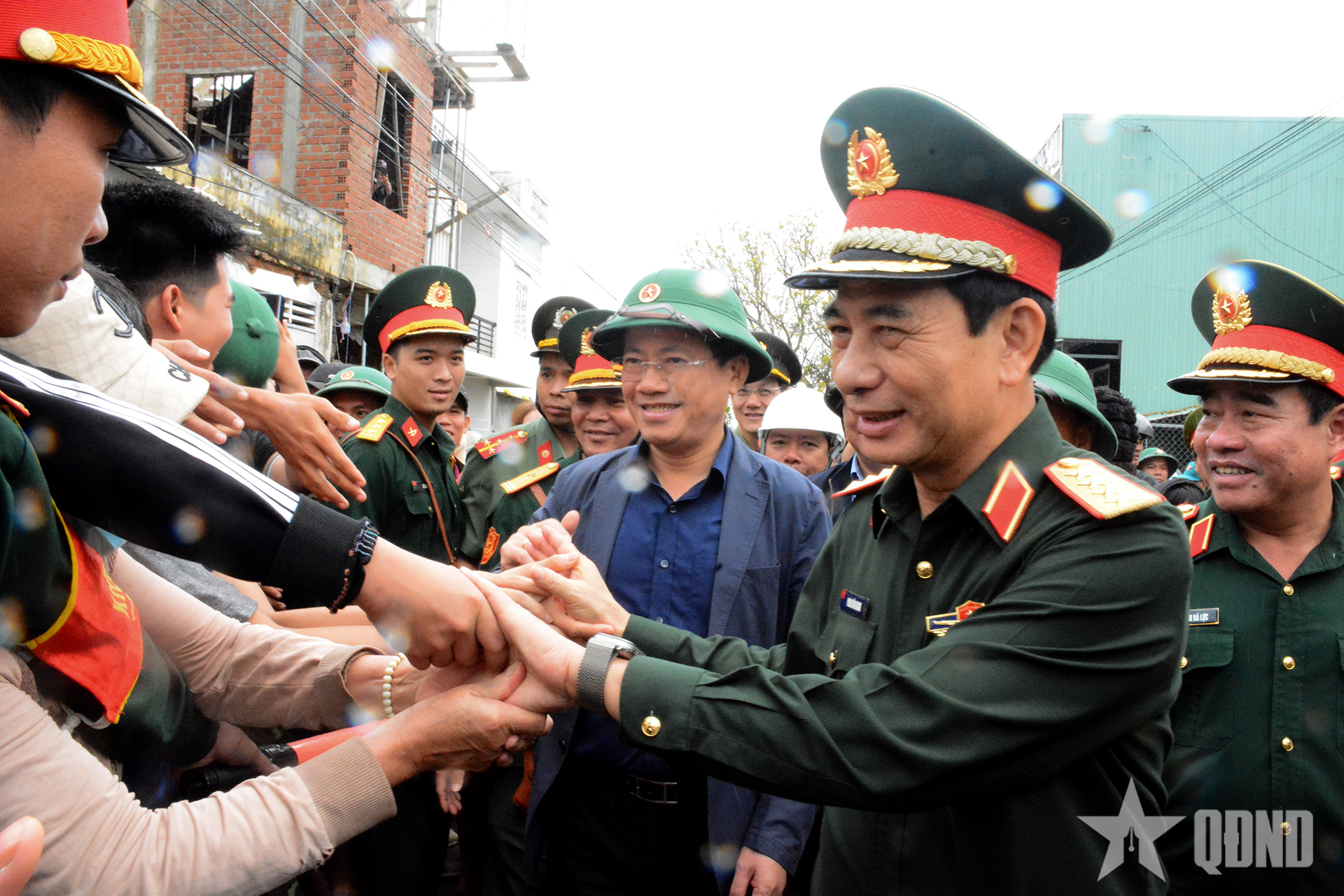 O Ministro da Defesa Nacional espera e acredita que o povo das comunas de Tuy Phuoc e Tuy Phuoc Dong, juntamente com o povo de Gia Lai, promoverá o espírito de amor mútuo, solidariedade, partilha e ajuda mútua, superando rapidamente os danos causados pelas inundações e estabilizando as suas vidas.
