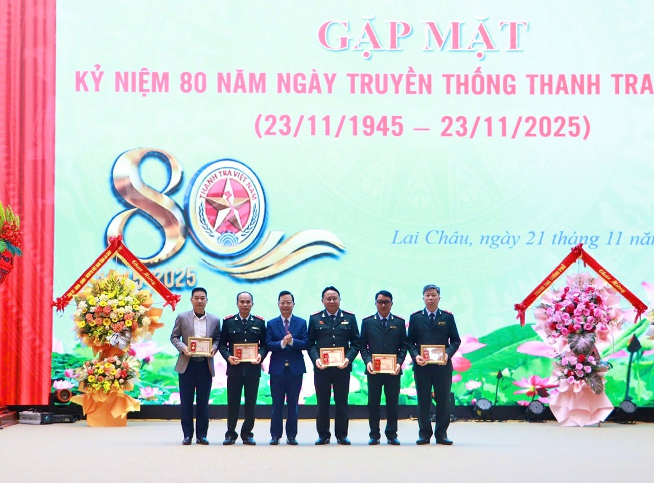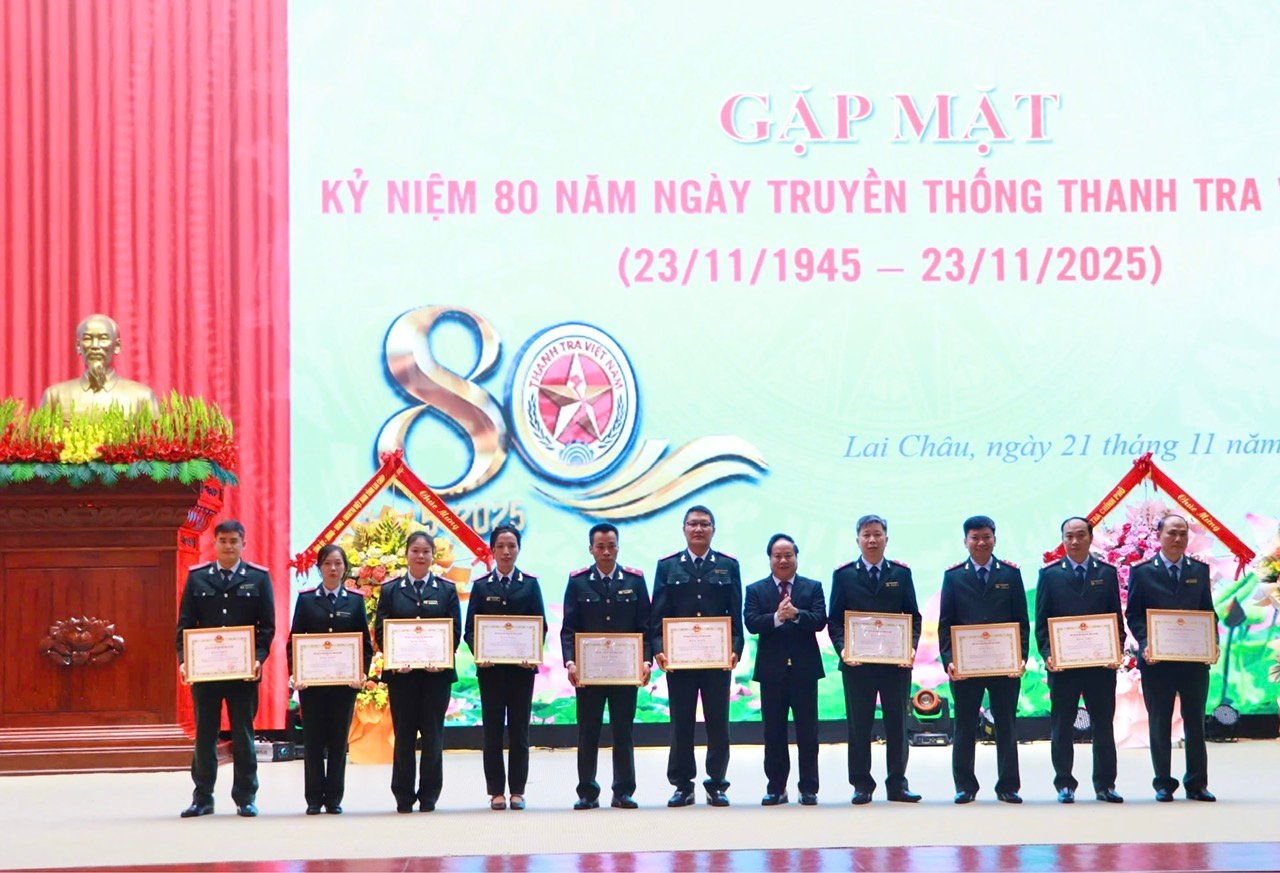 Nesta ocasião, o Primeiro-Ministro concedeu um Certificado de Mérito a um indivíduo por suas notáveis realizações no trabalho, contribuindo para a construção do socialismo e a defesa da Pátria; a Inspetoria Geral concedeu Medalhas Comemorativas a seis indivíduos por suas ativas contribuições para a construção e o desenvolvimento da Inspetoria do Vietnã. O Presidente do Comitê Popular da Província de Lai Chau concedeu Certificados de Mérito a dez indivíduos; a Inspetoria Provincial concedeu Certificados de Mérito a seis indivíduos por suas notáveis realizações no Movimento de Emulação para celebrar o 80º aniversário do Dia Tradicional da Inspetoria do Vietnã (23 de novembro de 1945 - 23 de novembro de 2025).