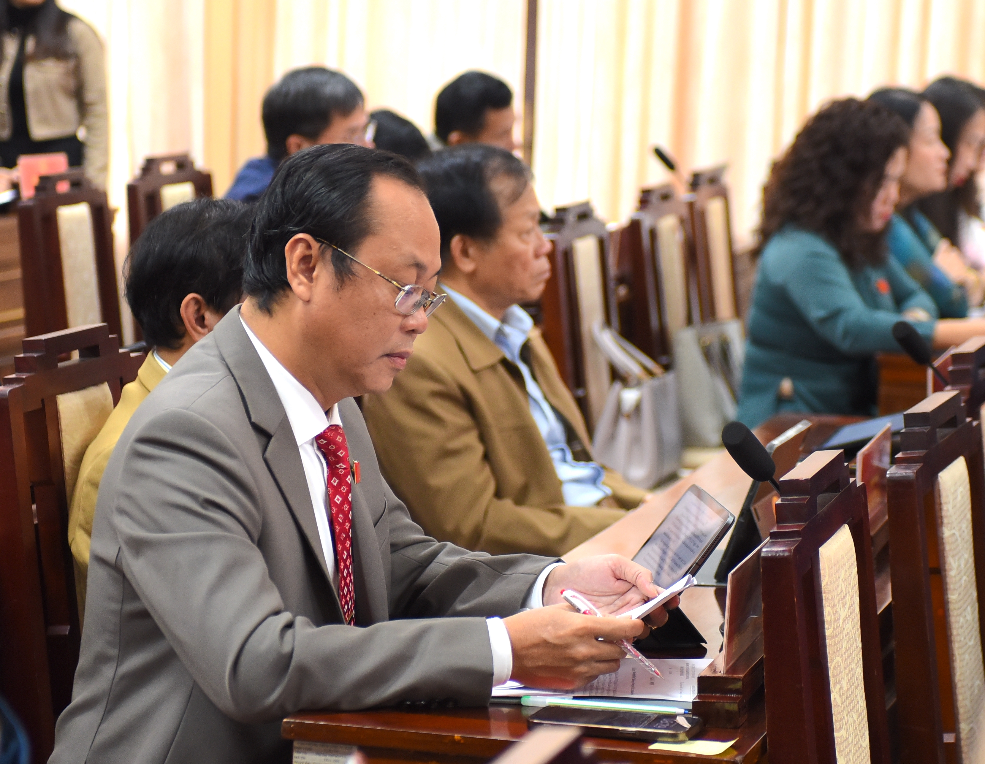 Em segundo lugar, é fundamental concretizar urgentemente a Resolução do 17º Congresso do Partido da Cidade em cada resolução, projeto, mecanismo e política do Conselho Popular; assegurar que não haja atrasos entre a resolução e a ação, entre a determinação política e os resultados práticos. Ao mesmo tempo, é preciso dar atenção aos regimes e políticas que visam melhorar a qualidade de vida da população em todos os aspectos. É necessário fortalecer a qualidade da revisão dos conteúdos apresentados nas reuniões para garantir que as resoluções sejam emitidas com a devida autoridade, em conformidade com a lei e próximas da realidade.