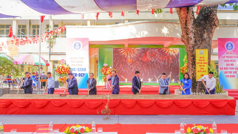 | Os delegados lançaram oficialmente o projeto de construção da Escola Secundária Le Quy Don. |