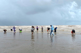 “Após tempestades, frutos do mar como amêijoas e mexilhões costumam ser trazidos pela correnteza até a costa, mas esta é a primeira vez que esta praia vê uma quantidade tão grande de amêijoas. Estima-se que haja toneladas de vários tipos de amêijoas”, acrescentou o líder do Comitê Popular da Comuna de Dien Trung.