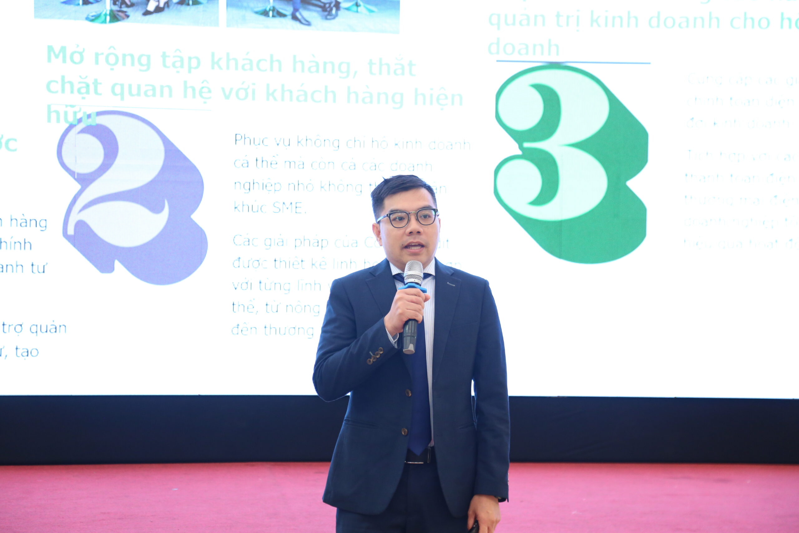 Seguindo as soluções digitais da MISA, o Sr. Ngo Binh Nguyen - Diretor do Segmento de Negócios Domésticos do VPBank - apresentou soluções financeiras adequadas especificamente para famílias, como o pacote de empréstimo V20K com taxas de juros preferenciais de apenas 3,99%/ano para empréstimos hipotecários, limite de empréstimo de até 20.000 bilhões de VND, ou abertura de um cartão de crédito VPBank CommCredit com reembolso de até 12%, ou soluções de acumulação lucrativas com rendimentos atraentes de até 4,5% da ferramenta Super Profit, especialmente adequado para clientes com fluxo de caixa ocioso no curto prazo.