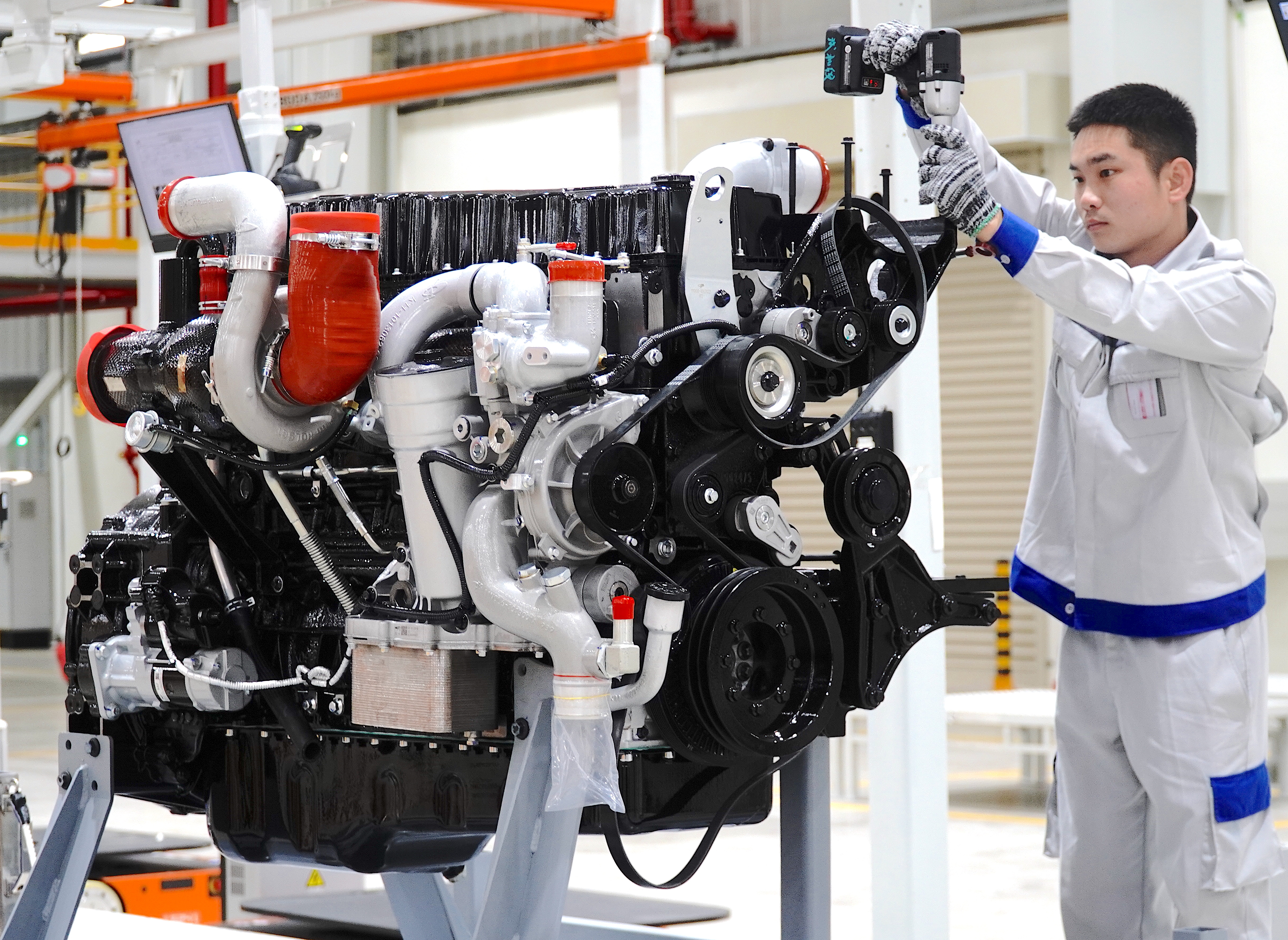 | Funcionários da Kim Long Motor Hue Joint Stock Company executam etapas de montagem do motor. |