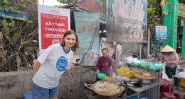 "Acho que as pessoas aqui fazem o banh xeo de uma forma um pouco diferente, então fiquei curiosa para saber o sabor deste prato. Nunca comi banh xeo assim antes", disse Iryna.