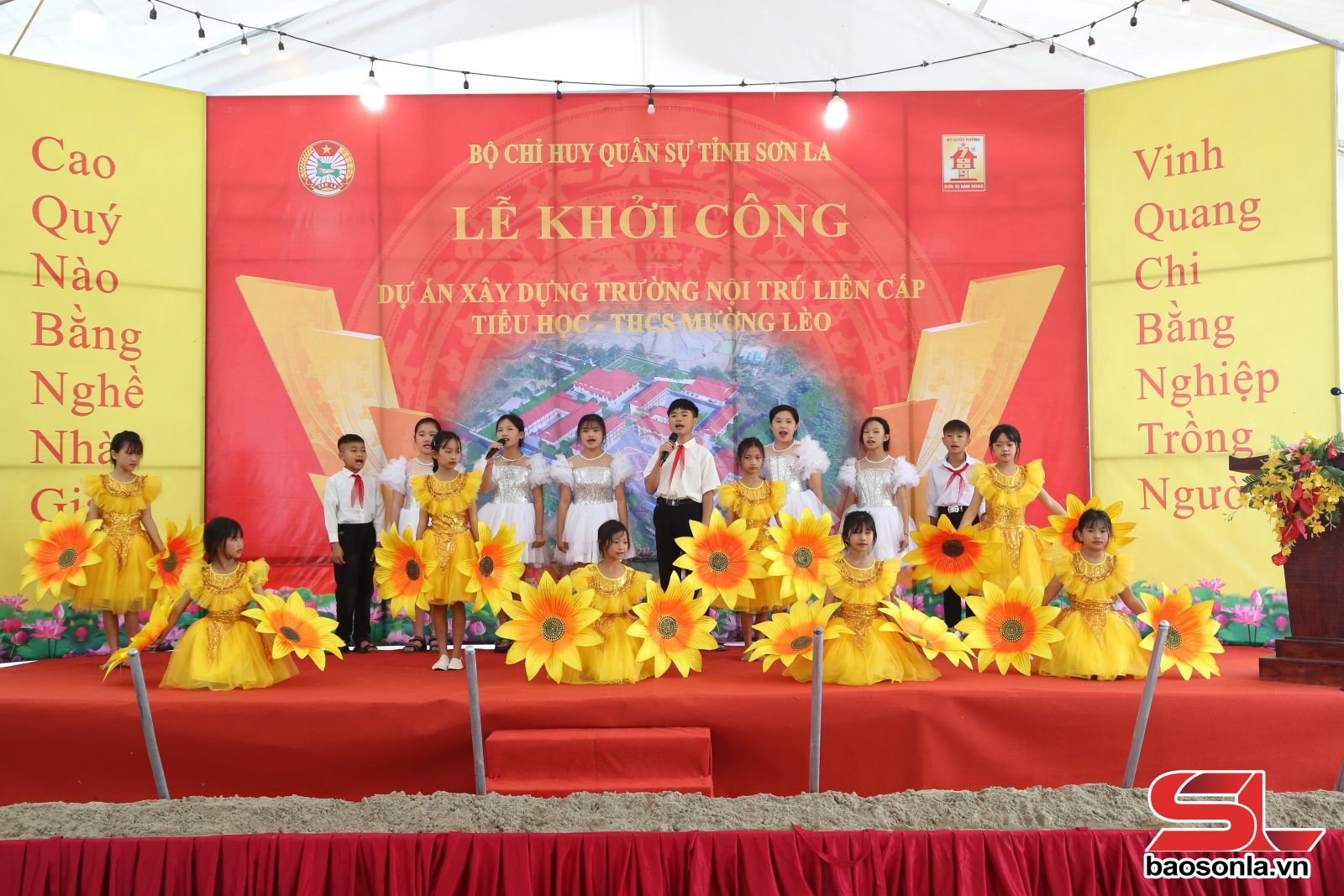 Estiveram presentes na cerimônia de inauguração líderes do Comando Militar Provincial, vários departamentos, filiais e setores provinciais, além de um grande número de pessoas, professores e estudantes da comuna de Muong Leo.