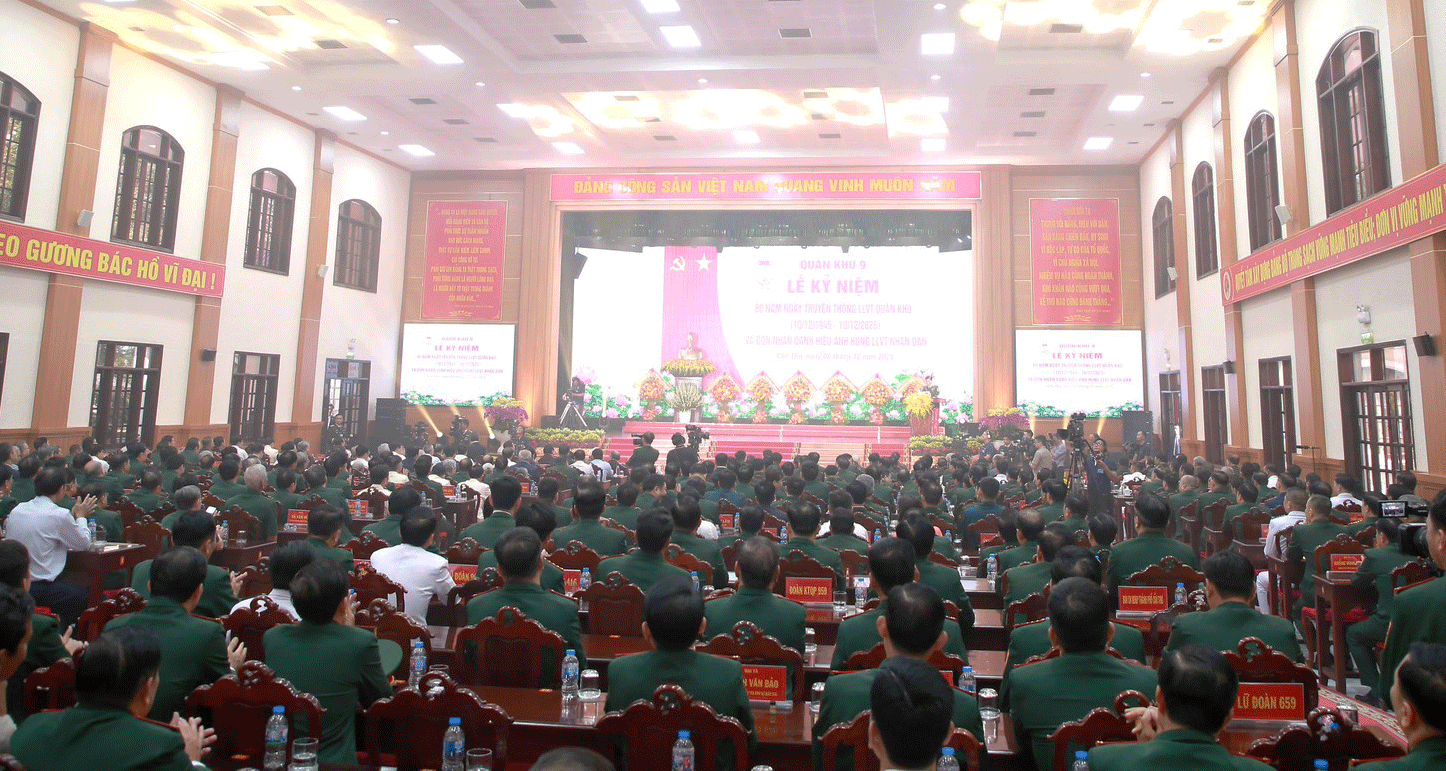 O discurso comemorativo proferido pelo Tenente-General Nguyen Xuan Dat, Vice-Secretário do Comitê do Partido e Comandante da Região Militar 9, afirmou que, ao longo de 80 anos de jornada histórica, avançando sob a gloriosa bandeira da Pátria, as forças armadas da Região Militar 9 superaram todas as dificuldades, adversidades e sacrifícios, lutaram, venceram e se desenvolveram na terra dos Nove Dragões, escrevendo uma epopeia imortal de heroísmo revolucionário; construindo a tradição de "Solidariedade do exército e do povo, firmeza, autossuficiência e bravura em combate", que se tornou a própria essência, a ideologia orientadora, em todas as atividades das forças armadas da Região Militar.