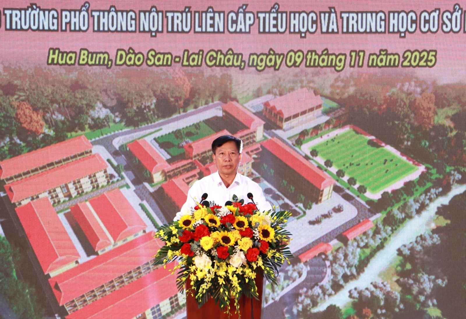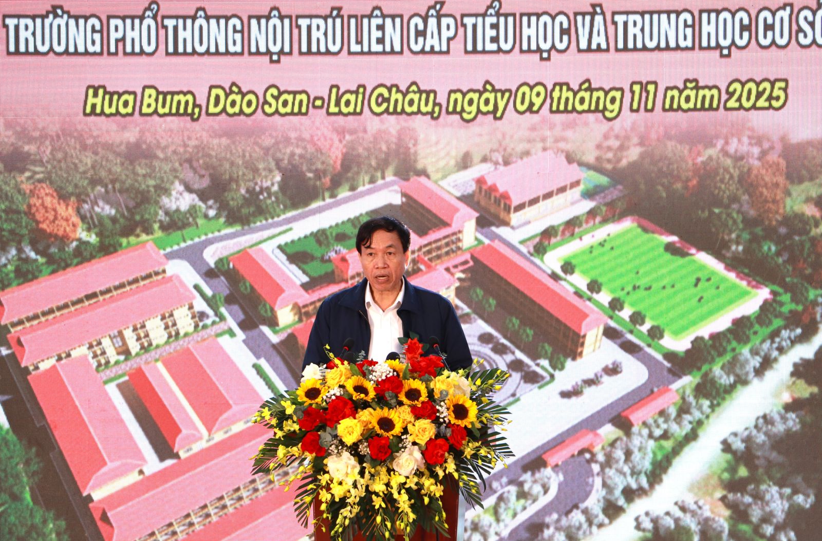 Representando a província de Lai Chau , estiveram presentes na cerimônia de inauguração os seguintes camaradas: Le Minh Ngan - Secretário do Comitê Provincial do Partido de Lai Chau; Sung A Ho - Vice-Secretário Permanente do Comitê Provincial do Partido de Lai Chau; Le Van Luong - Vice-Secretário do Comitê Provincial do Partido e Presidente do Comitê Popular Provincial; Tong Thanh Hai - Vice-Presidente Permanente do Comitê Popular Provincial; representantes de líderes de departamentos, ramos e setores provinciais; líderes e departamentos especializados, diretores de escolas, alunos, professores, chefes de aldeias nas comunas de Hua Bum e Dao San...