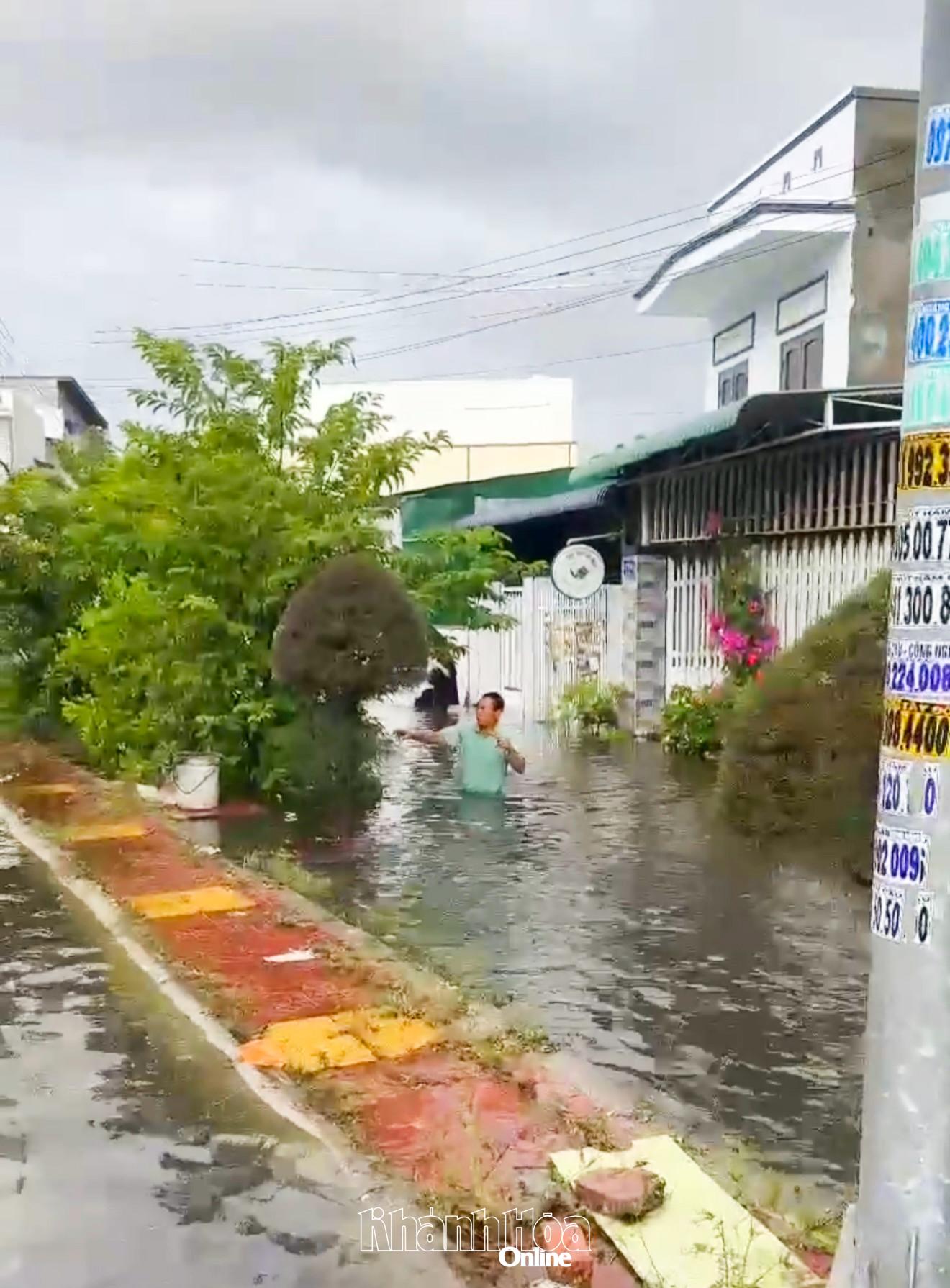 | Na área urbana K1 do distrito de Phan Rang, algumas áreas foram inundadas com uma profundidade de 30 a 50 cm. |