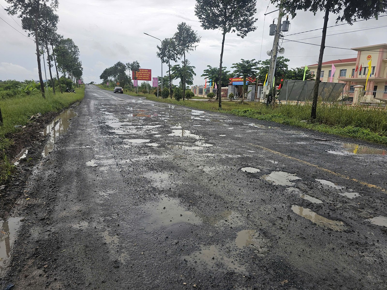 Segundo registros, desde o início do povoado 8 Xang até o povoado Thanh An, na comuna de Dong Hoa, num trecho de 6 km, o pavimento está severamente danificado. Buracos de quase meio metro de largura aparecem continuamente; muitos lugares têm água parada, tornando-os escorregadios. Motocicletas precisam desviar constantemente, caminhões só conseguem avançar muito lentamente, causando congestionamentos sempre que há muitos veículos.