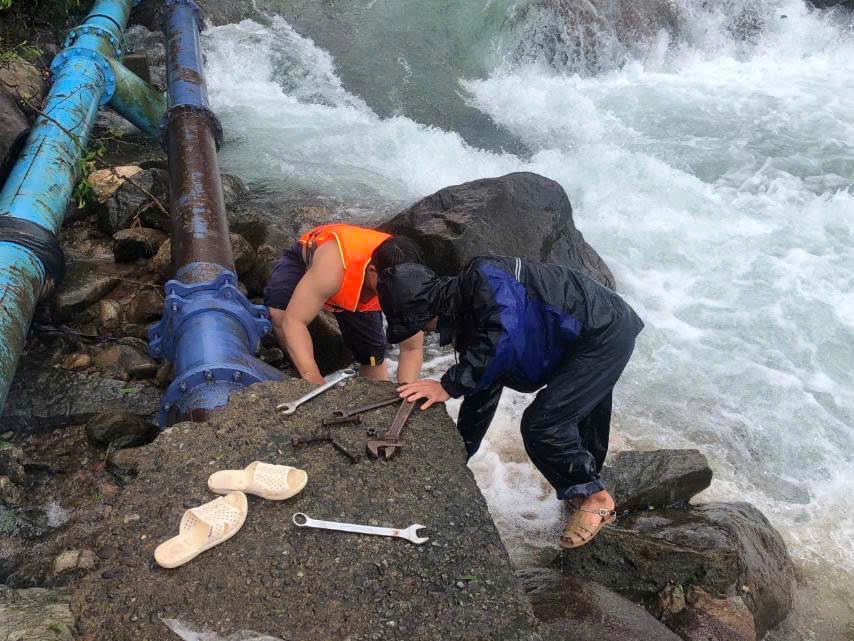 Águas altas, correntes fortes, muitos encanamentos apresentaram problemas, como: o encanamento D150 na ponte Le No, o D110 na vila de Huong Xuan; o D110 na vila de Phu Nhuan, comuna de Nam Dong; o D63 no vertedouro de KanZai, vila de Doi, Thuong Lo, teve canos arrastados pela correnteza. Alguns encanamentos se romperam e foram levados pela água, como: o D50 na ponte Mango Tree, o D63 sob a ponte Xuan Phu - Khe Tre; o deslizamento de água na vila de Xuan Phu - Khe Tre... afetando gravemente o abastecimento de água para a população.