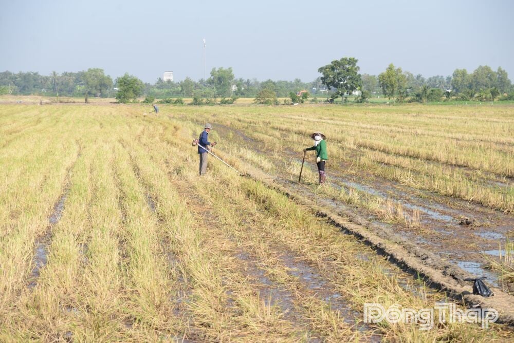 Também na comuna de Tan Hong, nos últimos dias, o Sr. Le Van Nguyen semeou às pressas a safra de arroz de inverno-primavera. O Sr. Nguyen relatou: “A safra de arroz de outono-inverno foi colhida logo após a estação chuvosa, então não pude retirar a palha do campo. Portanto, limpei o campo, enterrei a palha, usei o fungo Trichoderma e apliquei fertilizante fosfatado para impedir que os caramujos-maçã-dourada depositem seus ovos, uma praga que causa intoxicação orgânica no arroz de inverno-primavera.”
