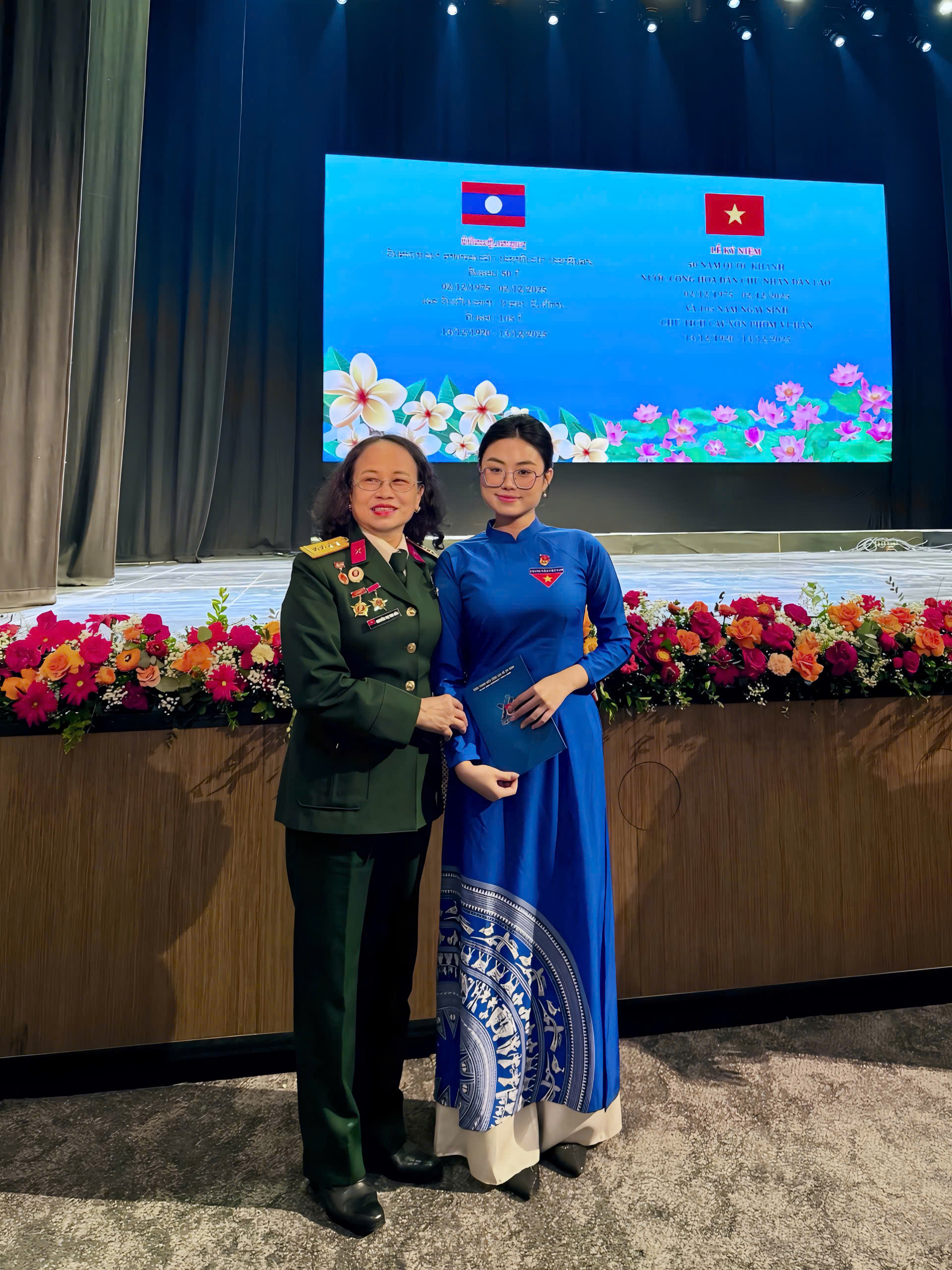 Na manhã de hoje, 27 de novembro, durante as comemorações do 50º aniversário do Dia Nacional da República Democrática Popular do Laos, a estudante Ha Gia Linh representou a jovem geração do Vietnã com um rosto encantador, discursando com confiança entre centenas de delegados dos dois países.