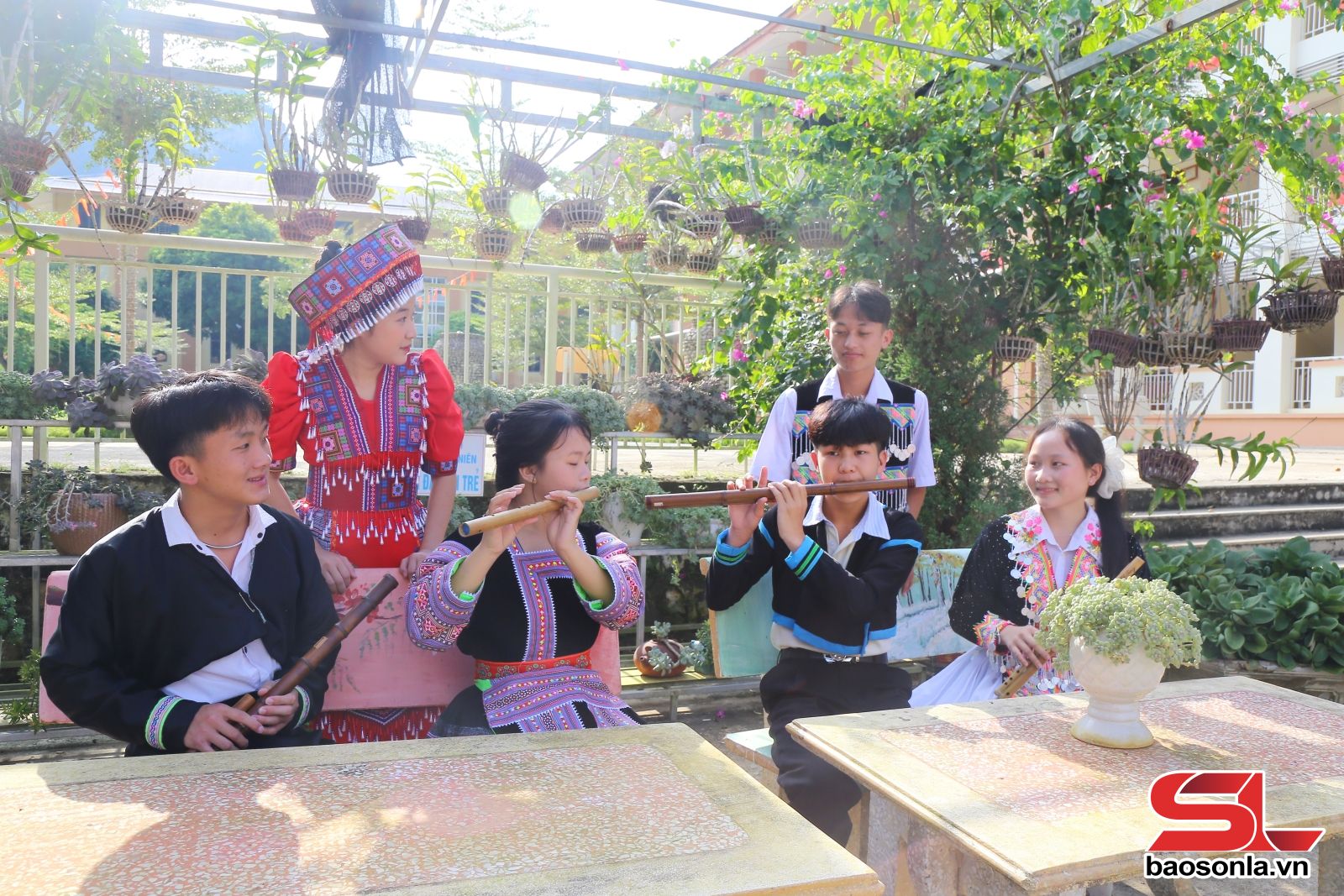 Além disso, o Internato Provincial para Minorias Étnicas também mantém com eficácia os clubes de flauta e bordado brocado de Mong, atraindo um grande número de alunos. Thao Thi Hoa, aluno do 10º ano, compartilhou: Ao ingressar no clube de flauta de Mong, aprendi e dominei as canções "Primavera na Vila Mong", "Canção de Amor do Noroeste"... e me apresentei em muitos programas culturais e artísticos da escola. Os clubes culturais se tornaram um "playground" para os alunos praticarem suas habilidades, amarem mais sua terra natal e se aprofundarem nas tradições.