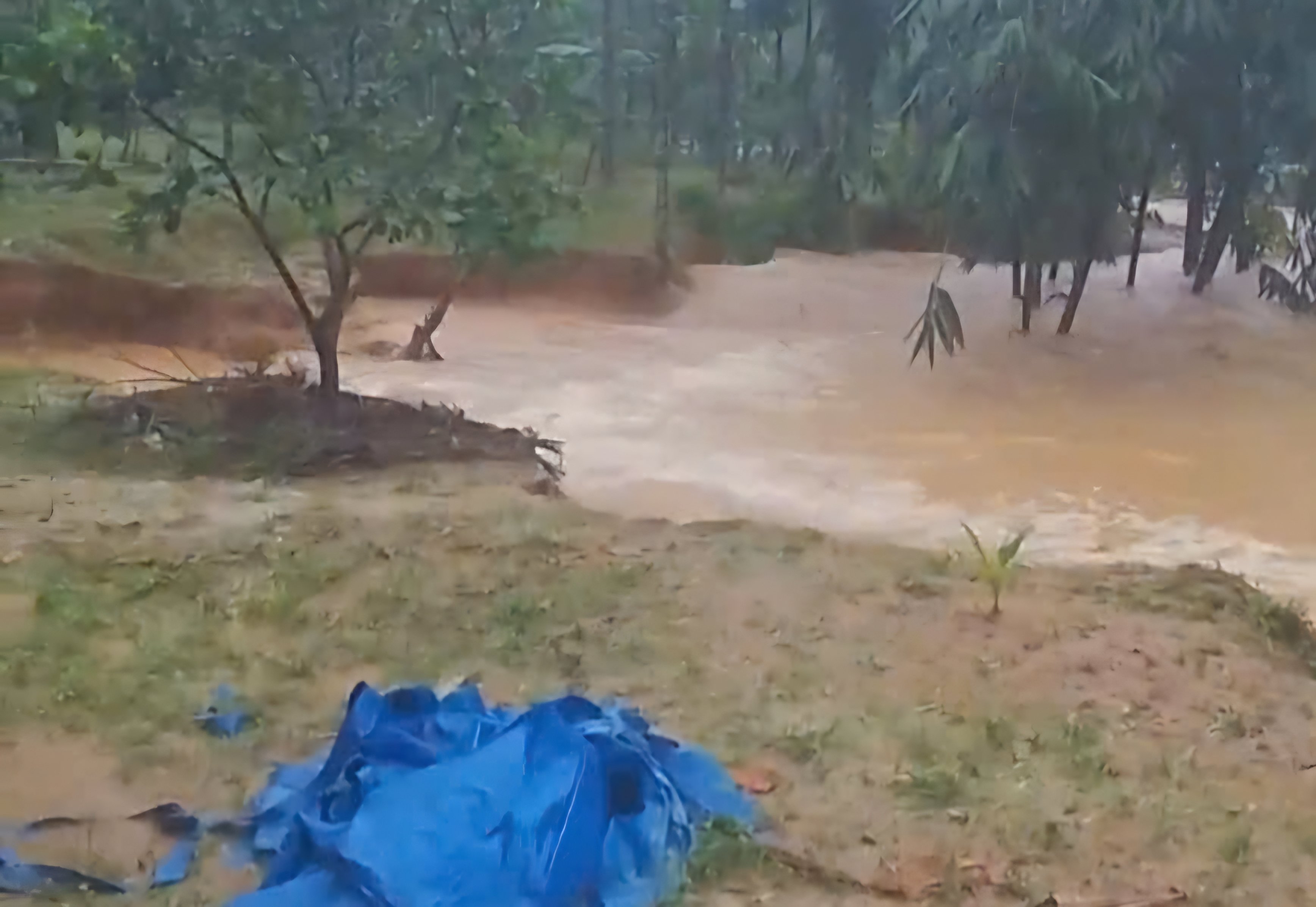 Todo o jardim e parte do terreno ao redor da casa do Sr. Bau foram erodidos e arrastados pelo rio, ameaçando diretamente as vidas e propriedades das pessoas na área.