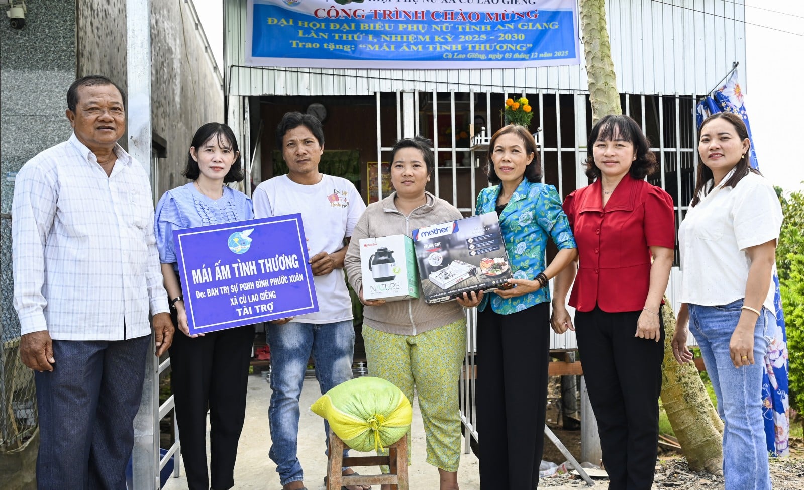 Líderes da comuna, a União das Mulheres e benfeitores entregaram uma "casa de amor e compaixão" à família da Sra. Huynh Thi Cam Nhung. Foto: BAO KHANH