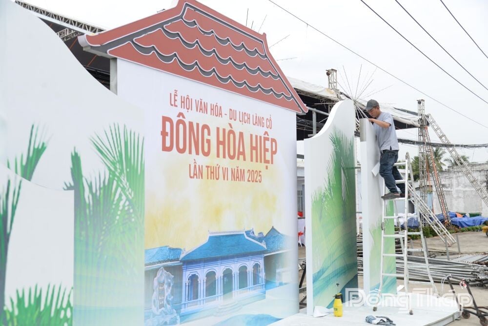Na manhã de 2 de dezembro, os trabalhos de decoração para receber o Festival foram concluídos. Assim, no portão da Vila Antiga de Dong Hoa Hiep e nas principais vias de acesso à vila, foram colocados diversos estandartes, bandeiras e flores frescas. Isso contribuiu para criar um ambiente mais colorido e alegre para a celebração do Festival.