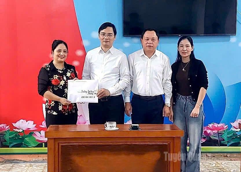 Em seu discurso na cerimônia de premiação, o Sr. Vu Dinh Hung enfatizou que esta é uma fonte oportuna de incentivo do setor da Educação para ajudar as escolas a superarem rapidamente as consequências de desastres naturais e a estabilizarem as condições de ensino e aprendizagem. Ele expressou a esperança de que a equipe, os professores e os alunos continuem a promover o espírito de superação de dificuldades, empenhando-se para ensinar e estudar bem, contribuindo para a melhoria da qualidade da educação integral na província.