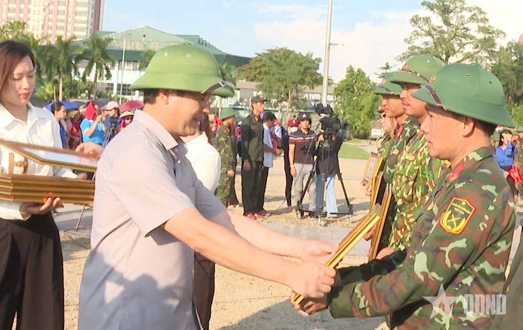 Na tarde de 15 de outubro, na Praça Vo Nguyen Giap, a província de Thai Nguyen realizou uma cerimônia de despedida para oficiais e soldados do Exército e outras forças que concluíram a tarefa de apoiar a recuperação das consequências da tempestade nº 11.