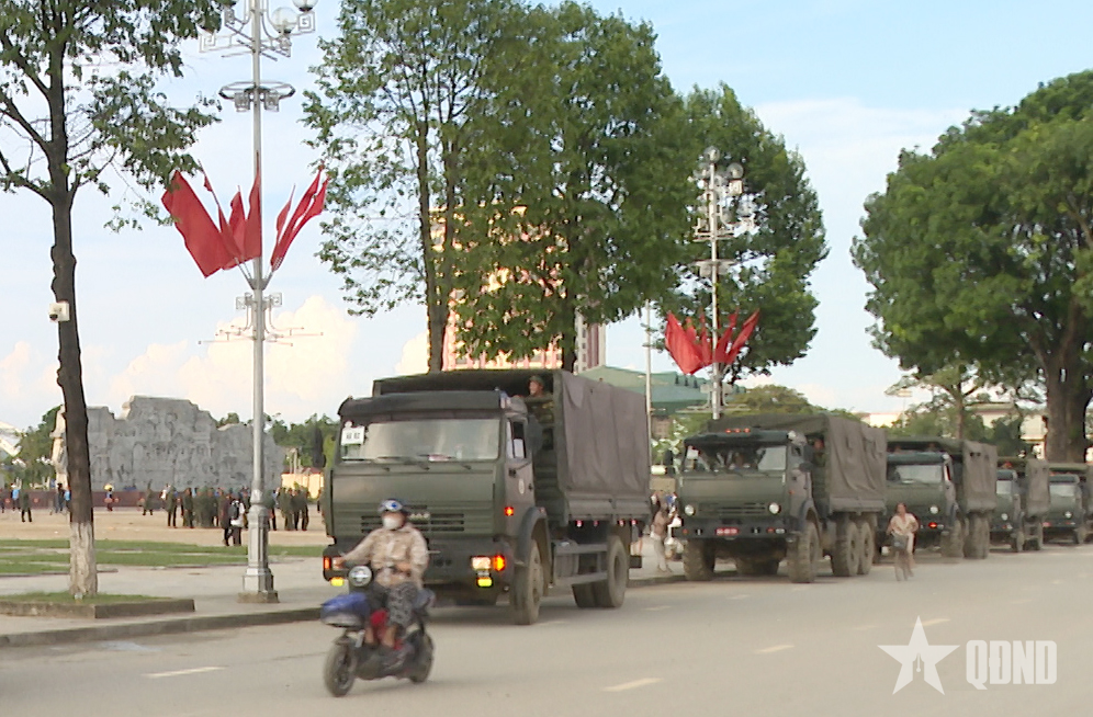 O comboio de veículos transportando soldados retornou às suas unidades após concluir a missão de apoiar a recuperação das consequências da tempestade nº 11 na província de Thai Nguyen.