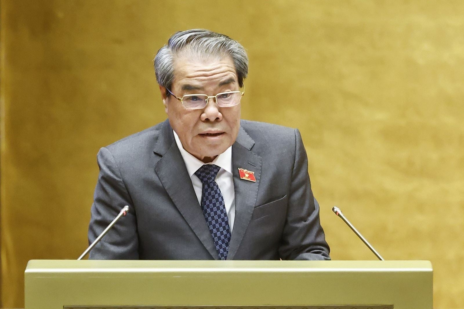 | O presidente do Comitê de Aspirações e Supervisão Popular da Assembleia Nacional , Duong Thanh Binh, apresenta um relatório na Assembleia Nacional. Foto: Doan Tan/VNA |