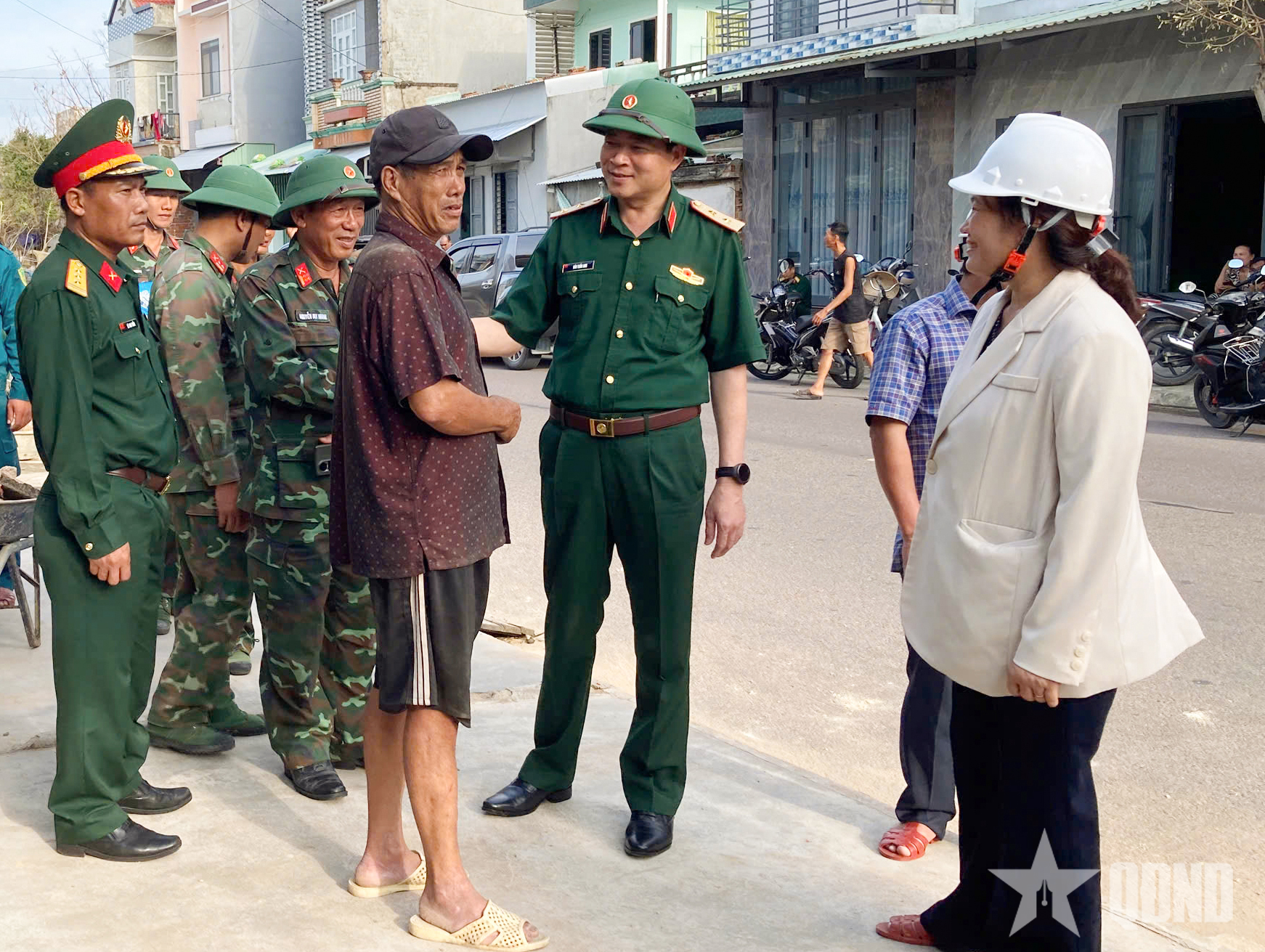 Nessa ocasião, o Tenente-General Dao Tuan Anh visitou e incentivou as pessoas, os oficiais e os soldados da 31ª Divisão que estão ajudando a população a superar as consequências da tempestade nº 13.