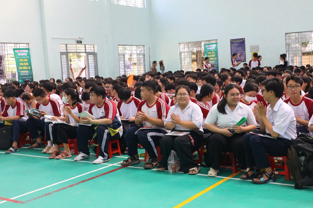 O Sr. Le Dinh Duy, Secretário da União da Juventude da Escola Secundária Nguyen Trai, afirmou: "Todos os anos, a escola frequentemente se coordena com diversas universidades e faculdades para organizar diversos programas de aconselhamento e orientação profissional. Além de ajudar os alunos a acessar informações intuitivamente, as sessões de aconselhamento também são uma oportunidade para eles trocarem ideias e tirarem dúvidas com especialistas e professores, tendo assim uma visão mais realista de suas futuras carreiras".