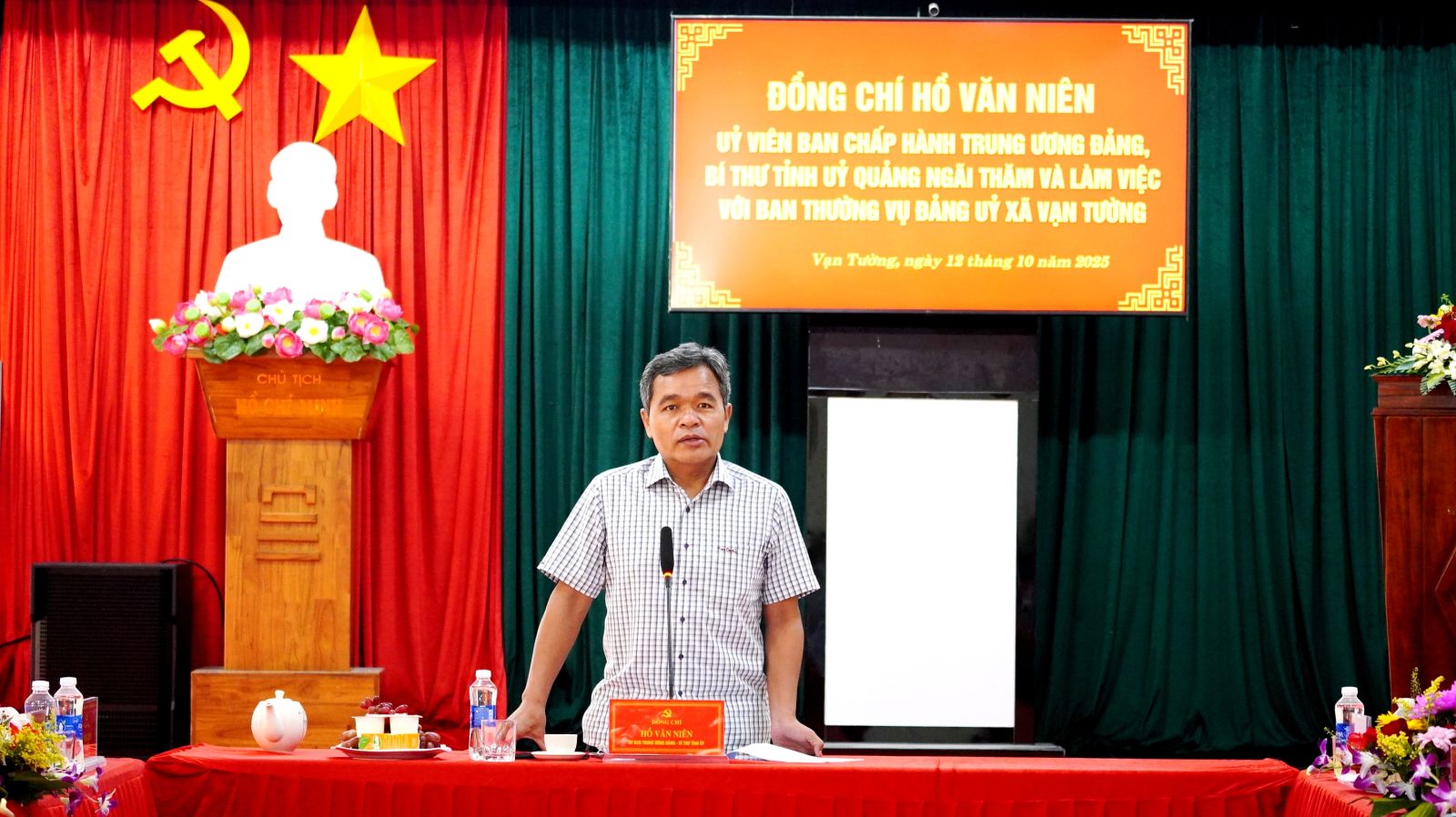 Falando na sessão de trabalho, o membro do Comitê Central do Partido e Secretário Provincial do Partido, Ho Van Nien, reconheceu, elogiou e apreciou muito a proatividade e a positividade do Comitê do Partido da Comuna de Van Tuong nos últimos tempos. Ele enfatizou que Van Tuong está localizada na área central da Zona Econômica de Dung Quat, possui muitos empreendimentos de grande porte, muitos potenciais e vantagens para o desenvolvimento socioeconômico, especialmente por ser uma localidade com alta receita orçamentária da província.