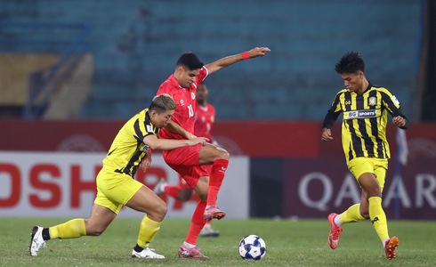 VÀO!!! VÀO!!! Quá nhanh!!! Cầu thủ của Tampines Rovers mất bóng nguy hiểm. Bóng đến chân Quang Hải và cầu thủ này loại bỏ hậu vệ đối phương trước khi nâng tỉ số lên 2-0. -