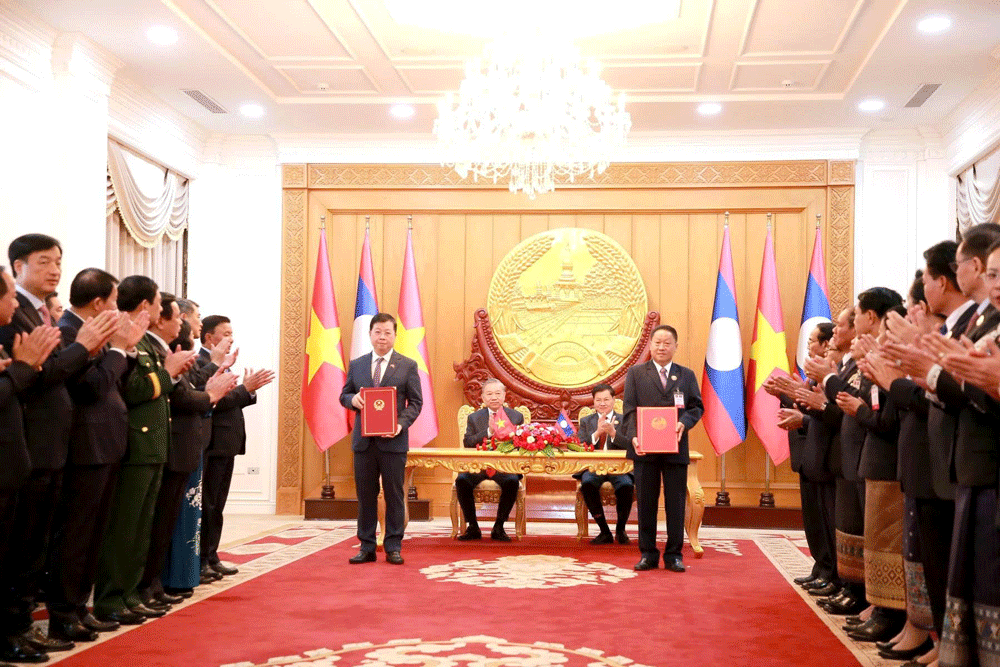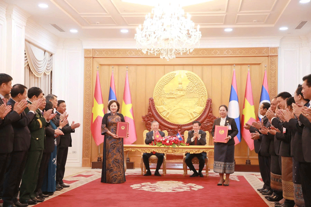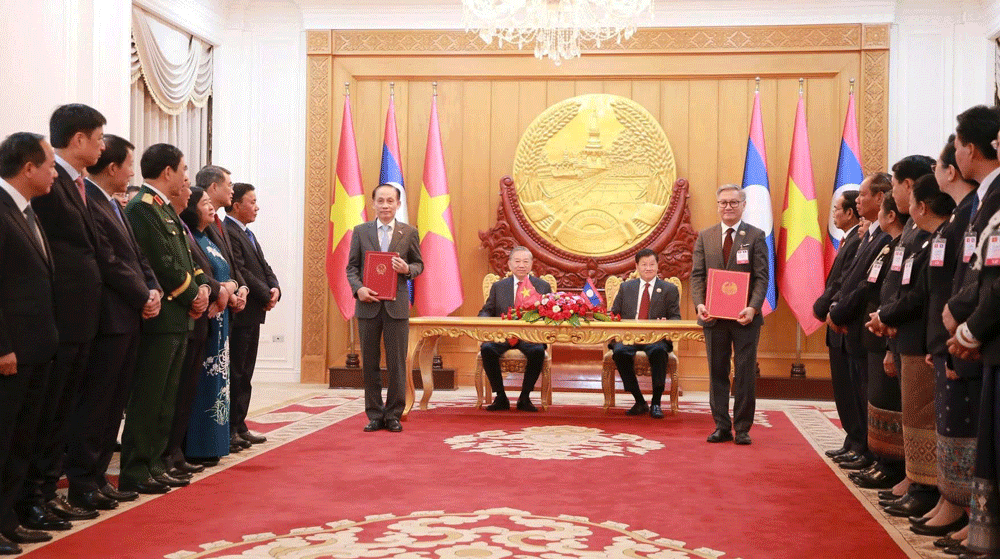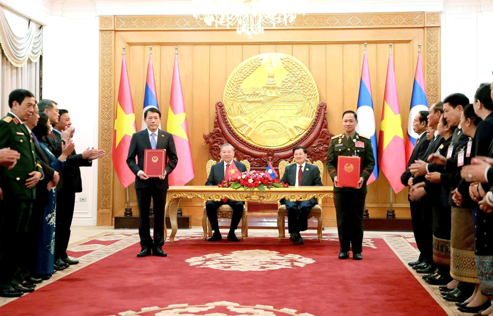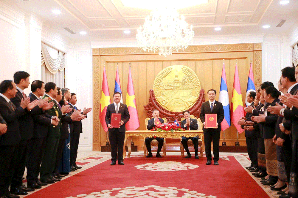 În cadrul vizitei de stat în Republica Populară Democrată Laos și al celebrării celei de-a 50-a Zile Naționale a Republicii Populare Democrate Laos, la prânz, pe 1 decembrie, imediat după discuții, secretarul general To Lam și secretarul general și președintele Laosului, Thongloun Sisoulith, precum și delegații de rang înalt ale celor două țări au asistat la ceremonia de schimb de documente de cooperare.