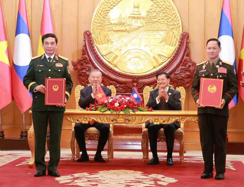 Secretarul general To Lam și secretarul general și președintele Laos, Thongloun Sisoulith , alături de delegații de rang înalt din cele două țări au asistat la ceremonia de înmânare a documentelor de cooperare dintre Ministerul Apărării Naționale din Vietnam și Ministerul Apărării Naționale din Laos.