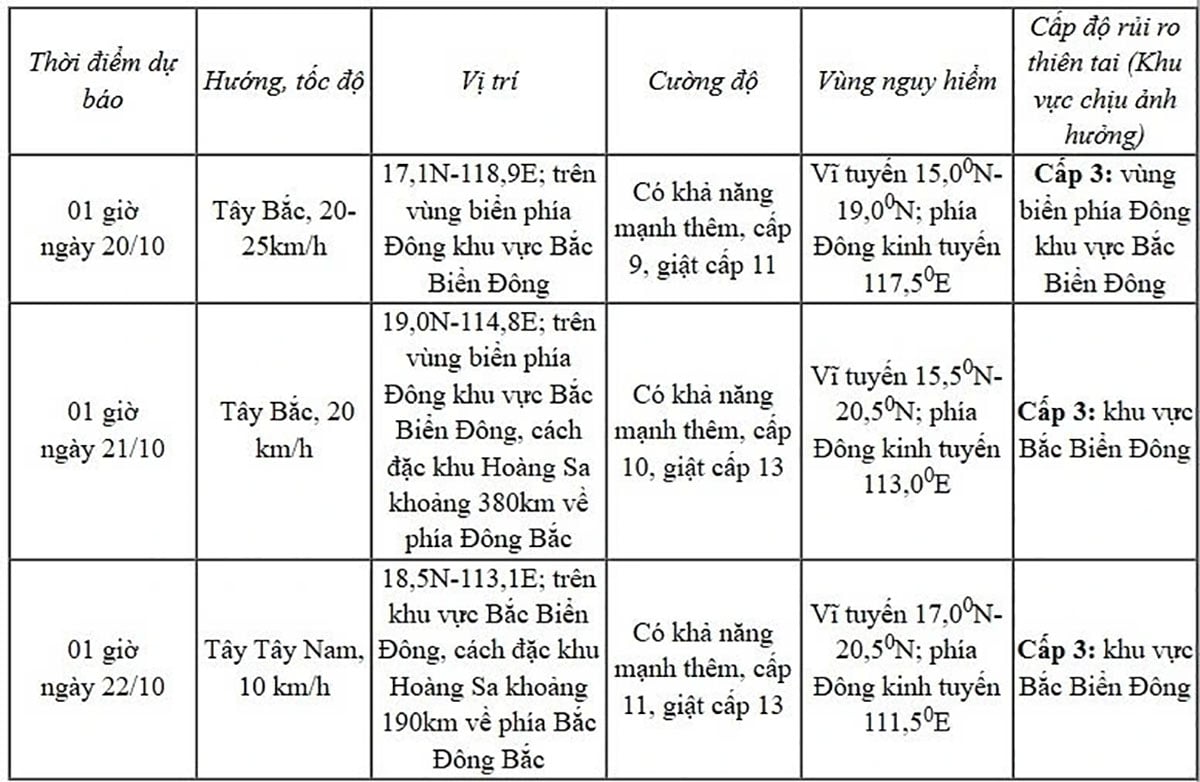 Avertisment: Între 20 și 22 octombrie, zona Mării de Nord-Est (inclusiv zona specială Hoang Sa) va fi probabil afectată de vânturi puternice de nivel 10-11, cu rafale de până la nivelul 13.