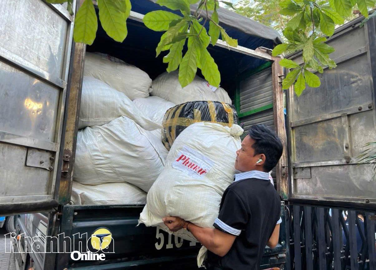 | Mărfurile au fost transportate de Ziarul Femeilor din Ho Chi Minh City într-un vehicul pentru a fi trimise la Khanh Hoa. |